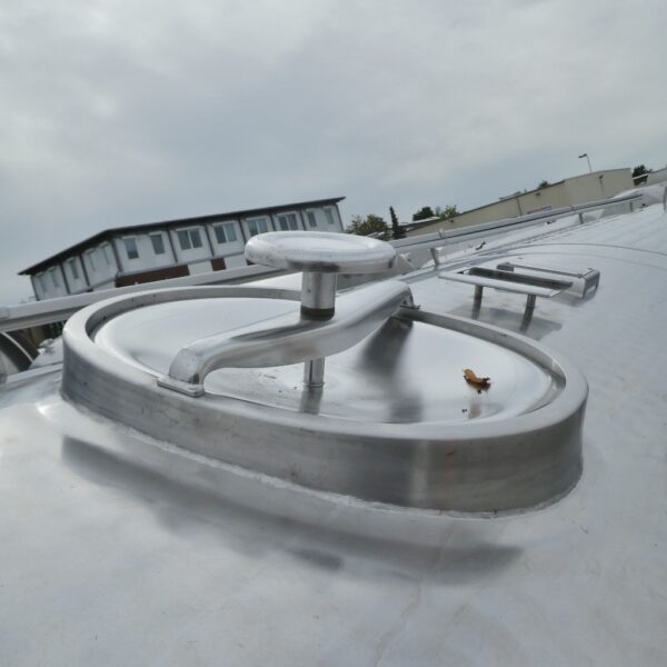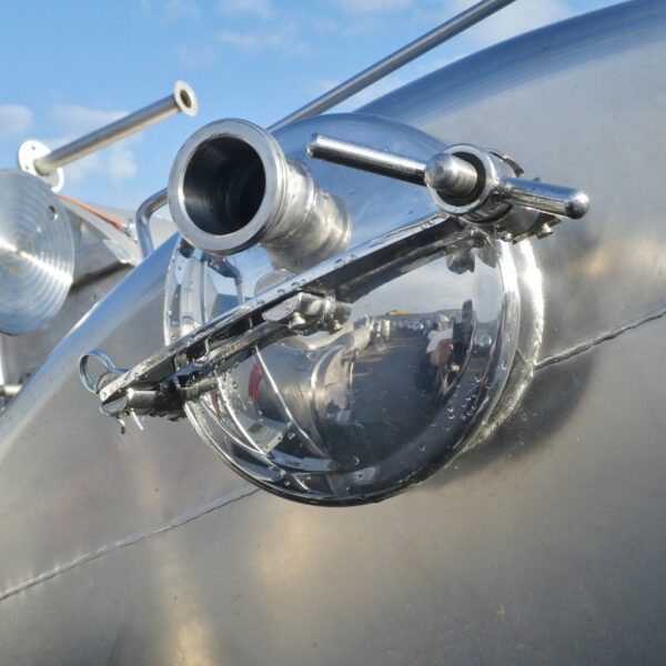 Wine storage; Heating / cooling jacket (Thermoplate) by approx. 1,220 mm of the cylinder height; Manhole approx. 325 x 425 mm; 1 handhole diameter 200 mm in the upper bottom; Outlet DN 100 DIN
