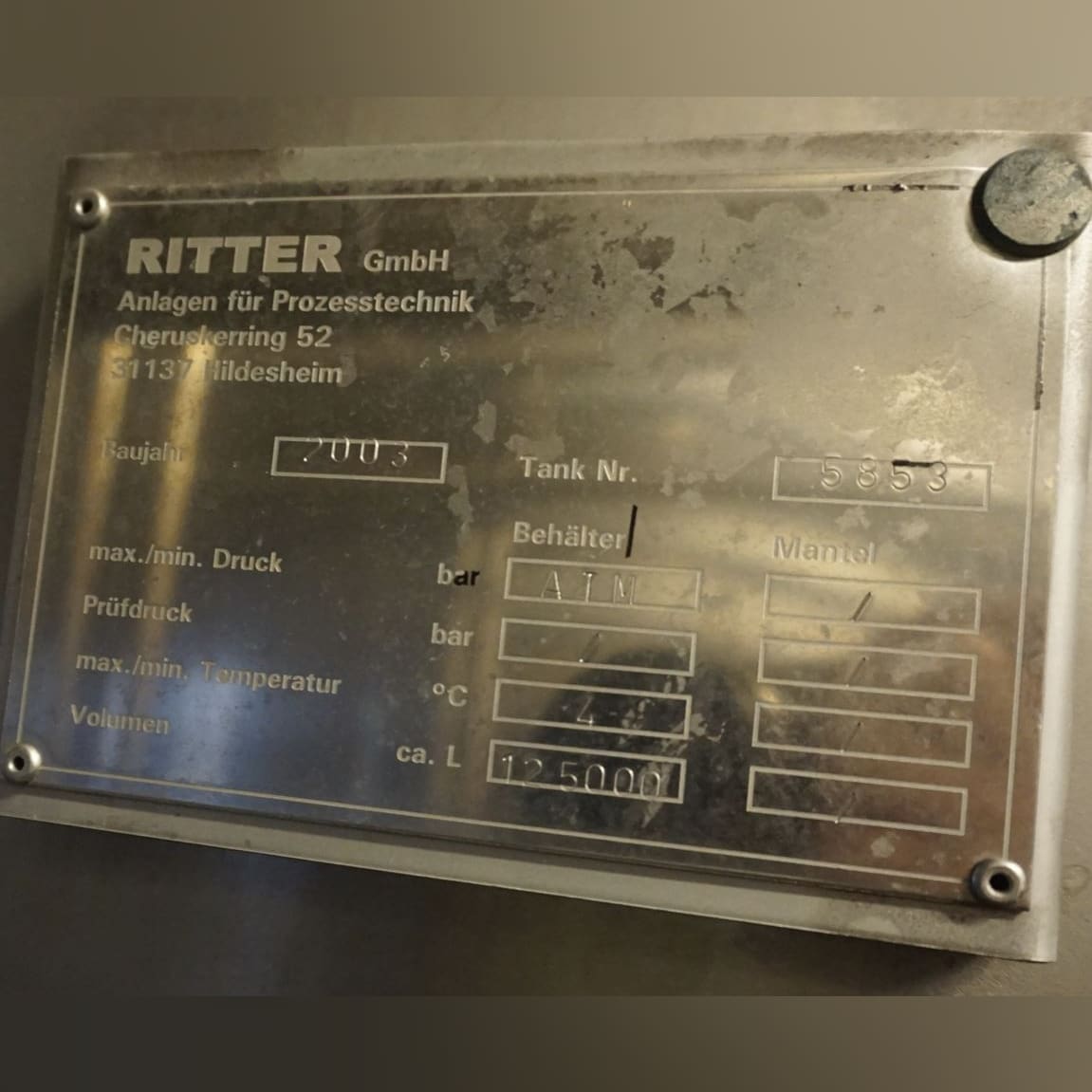 125000 liter tank i Rostfritt 304