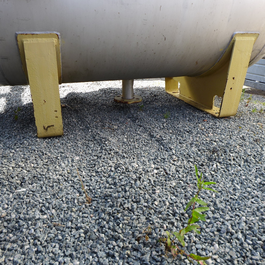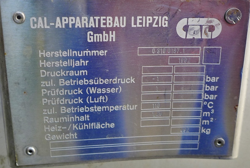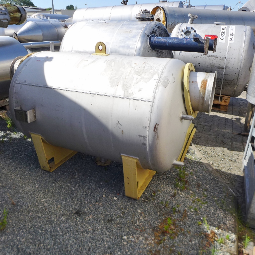 Food utilization; 2 bearing shells, Fe; Test pressure (water): 1 bar; 3 openings diameter tube inside approx. 315 mm in the bottoms (1x with plated cover); 1 baffle plate inside the tank (see