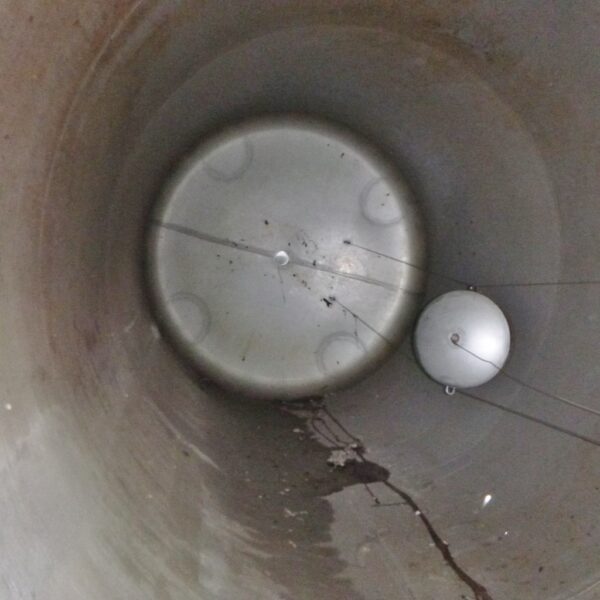 Storage tank for resins; some residues of previous content;manhole cover is missing