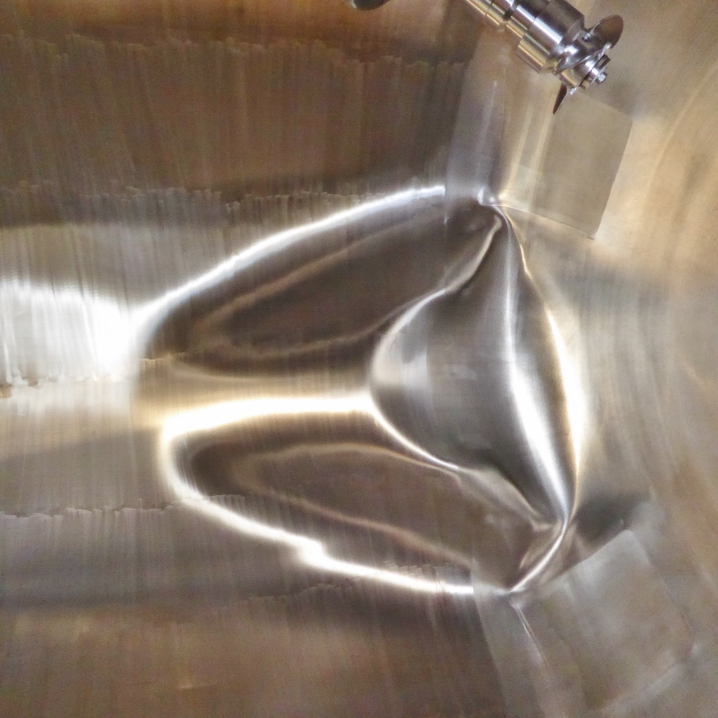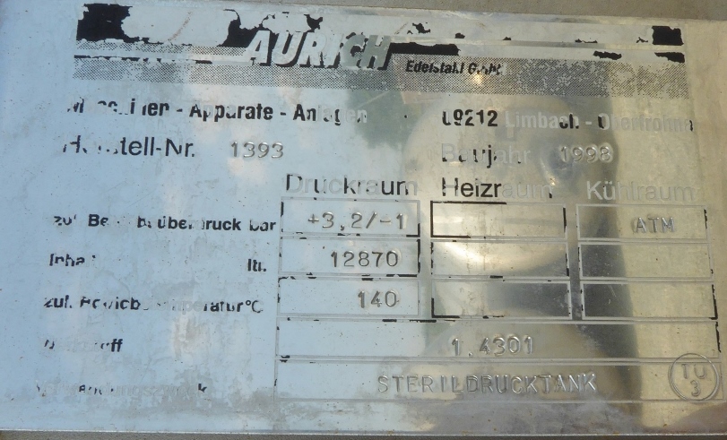 water tank (fruit juice industry); 1 kräftige Beule im Innenbehälter (siehe Fotos); bump at the insulation jacket; we can’t give any guarantees about the agitator