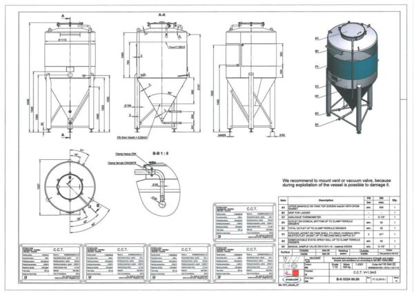 Included in the price: cip spraybol, thermometer, sample valve. In option: butterfly valve, airlock (see options).