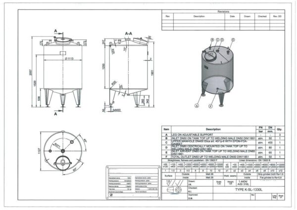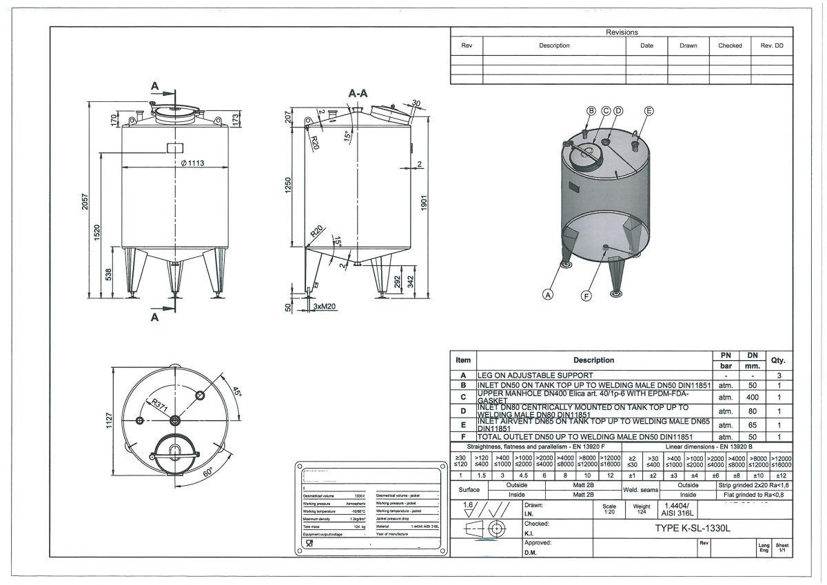 1330 liter tank i Syrafast 316