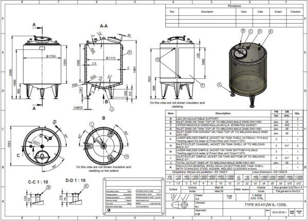 Ångtryck värmeväxlare: 0,49 Bar Ångtryck värmeväxlare botten: 0,49 Bar Anslutning värmeväxlare: 1" BSP Anslutning värmeväxlare botten: 1" BSP Arbetstemperatur värmeväxlare cylinder: 110 °C Arbetstemperatur värmeväxlare botten: 110 °C Kontaktyta botten: 0,35 Kontaktyta cylinder: 3,40 m² Position värmeväxlare: the complet cilinder Typ av värmeväxlare på cylinder: dimple-jacket Typ av värmeväxlare på botten: dimple-jacket Vattentryck värmeväxlare: 3 Bar Vattentryck värmeväxlare botten: 3 Bar
