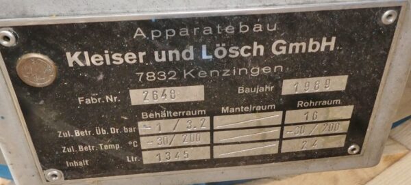 Pharmaceutical chemistry; 2 support brackets made of Aisi 304 (contact surface the other way around; see photos); flanges partly made of Fe; further techn. documents available; some residues of
