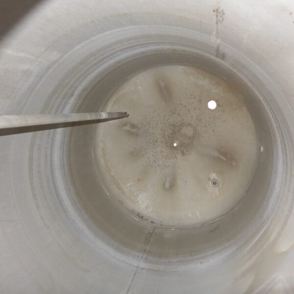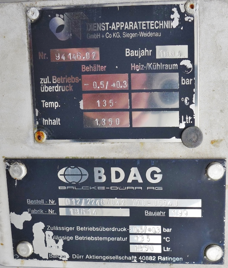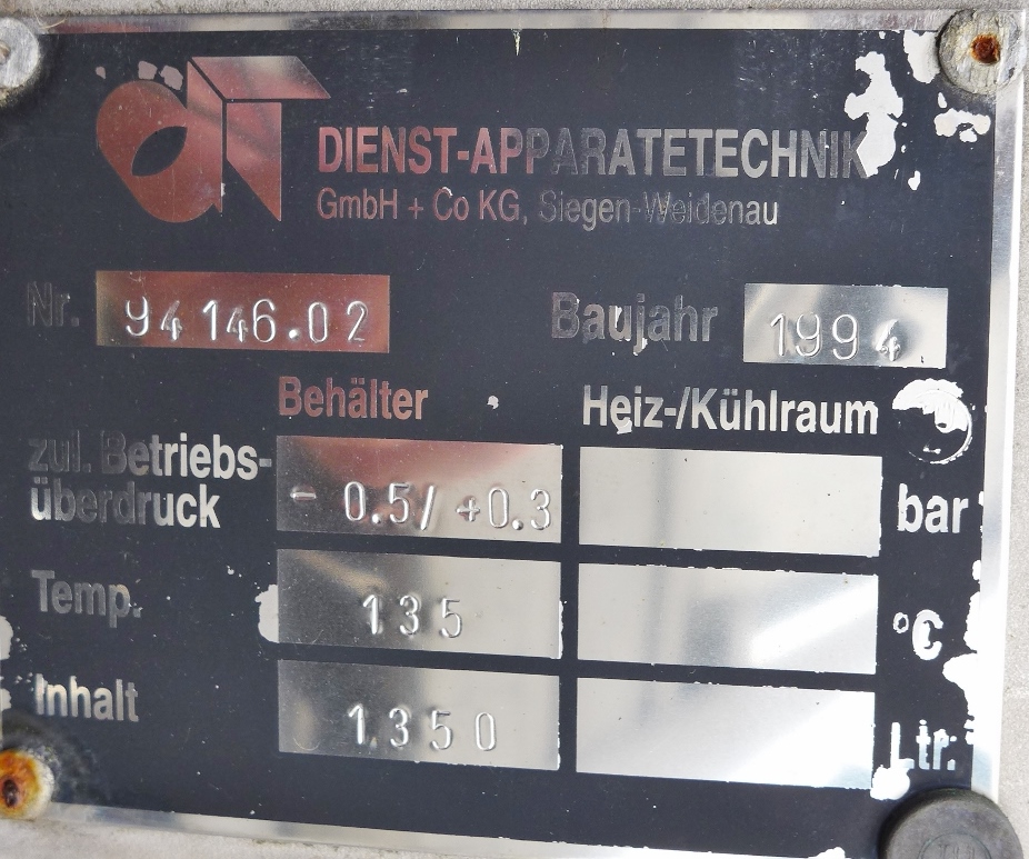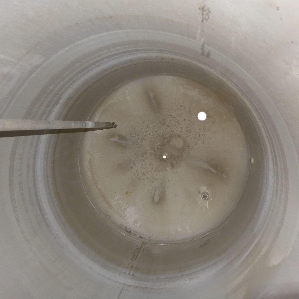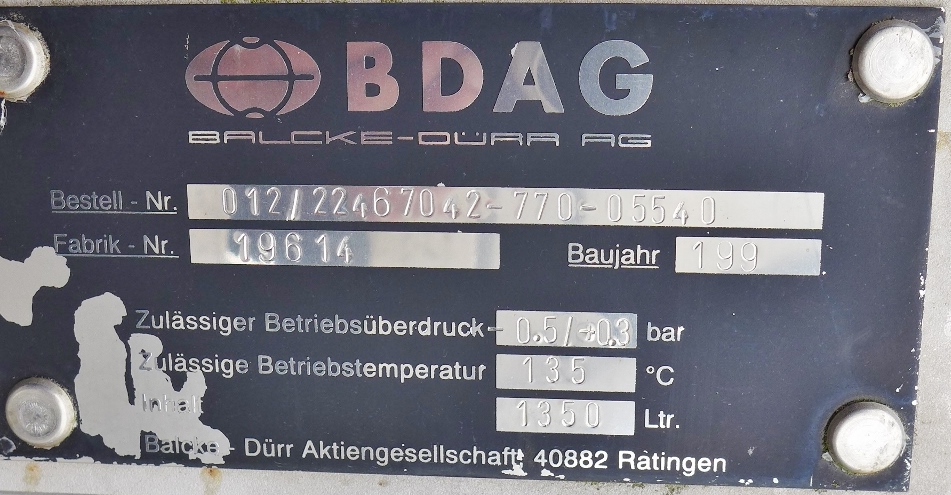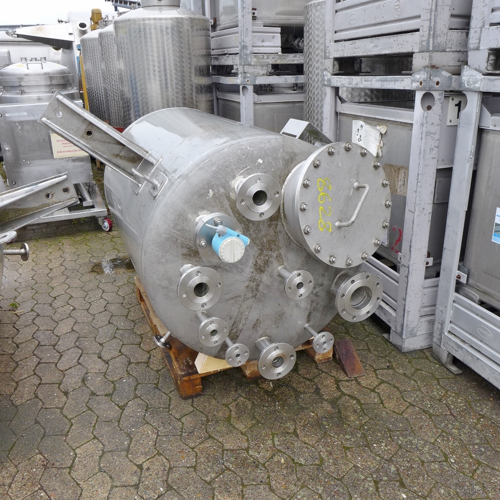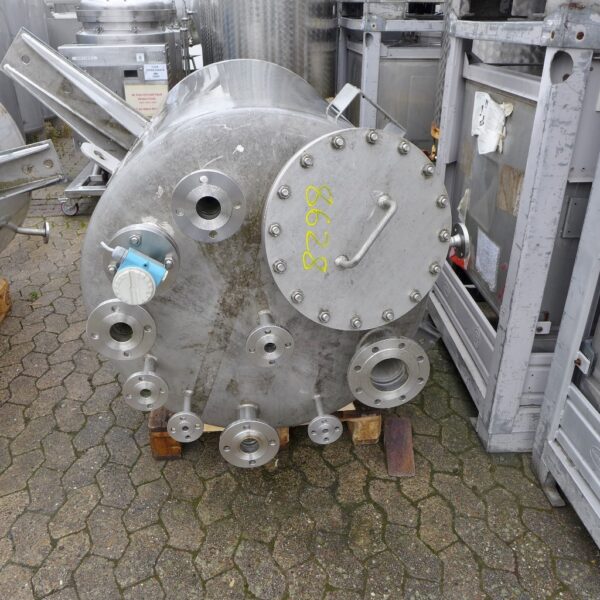 Manhole diameter 350 mm; 2 support brackets, Aisi 316; central bottom outlet was cut off by the previous operator (see photos); Connections upper bottom: 1 x DN 100; 4 x DN 50; 2 x DN 25; 2 x DN 15;