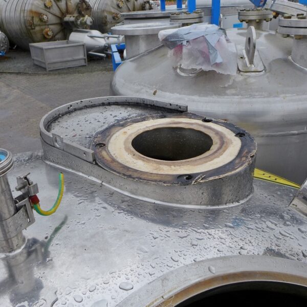Food industry; 3-legged foot frame made of stainless steel with components made of mild steel; smaller dents in the insulating jacket; Fastening toggle of the manhole cover is missing; we can’t give