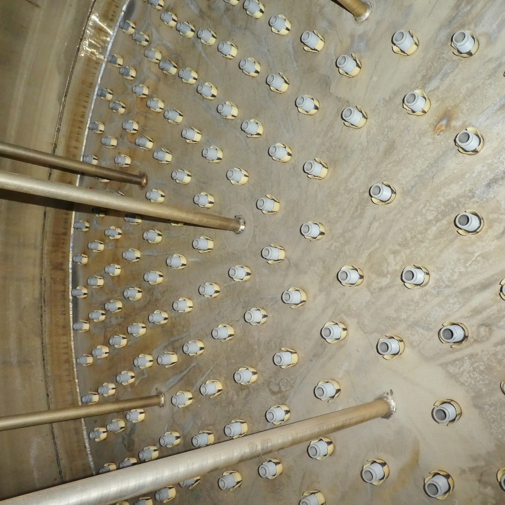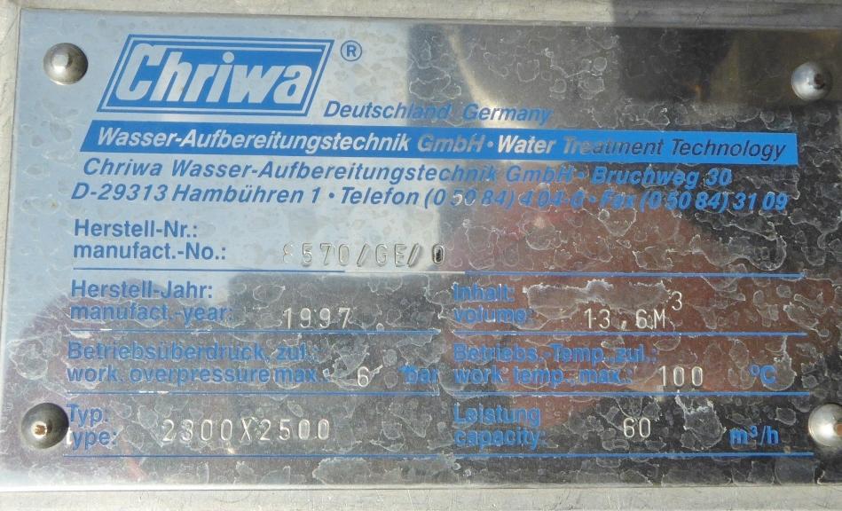 waterfilter in the beverage industry; welded filter plate inside (see pictures); output 60 cbm/h; nozzles of the filter plate made of plastic; some residues of previous content