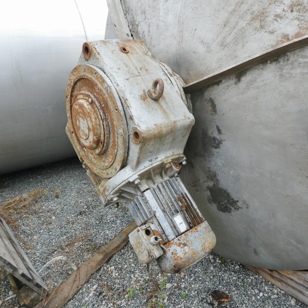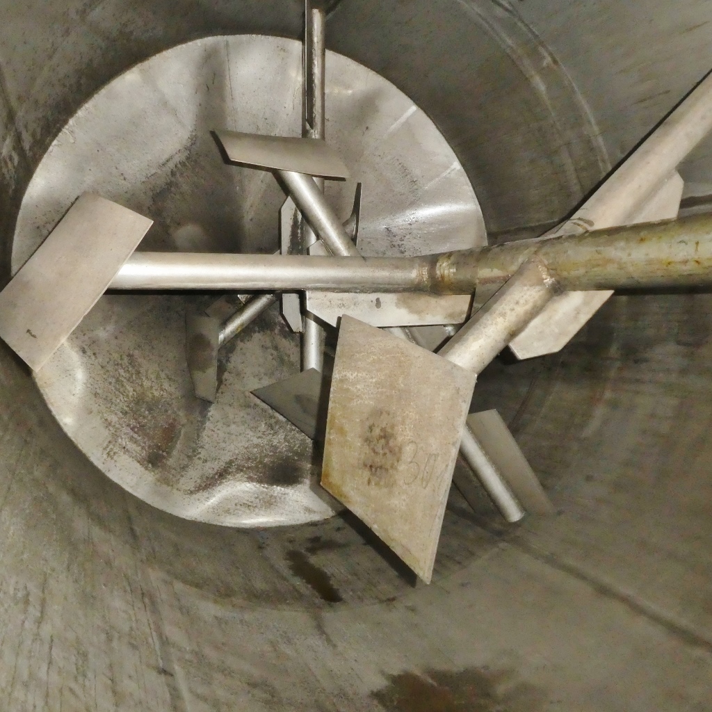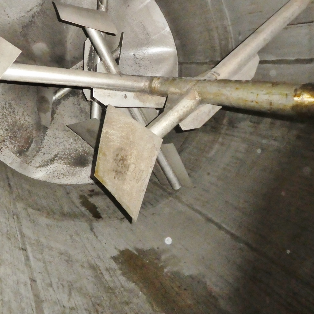 Double jacket, Aisi 304 for heating/cooling around the lower cylinder area and the lower bottom; lower inner bottom with dents; Manhole approx. 320 x 420 mm (1 connection in the manhole cover torn;