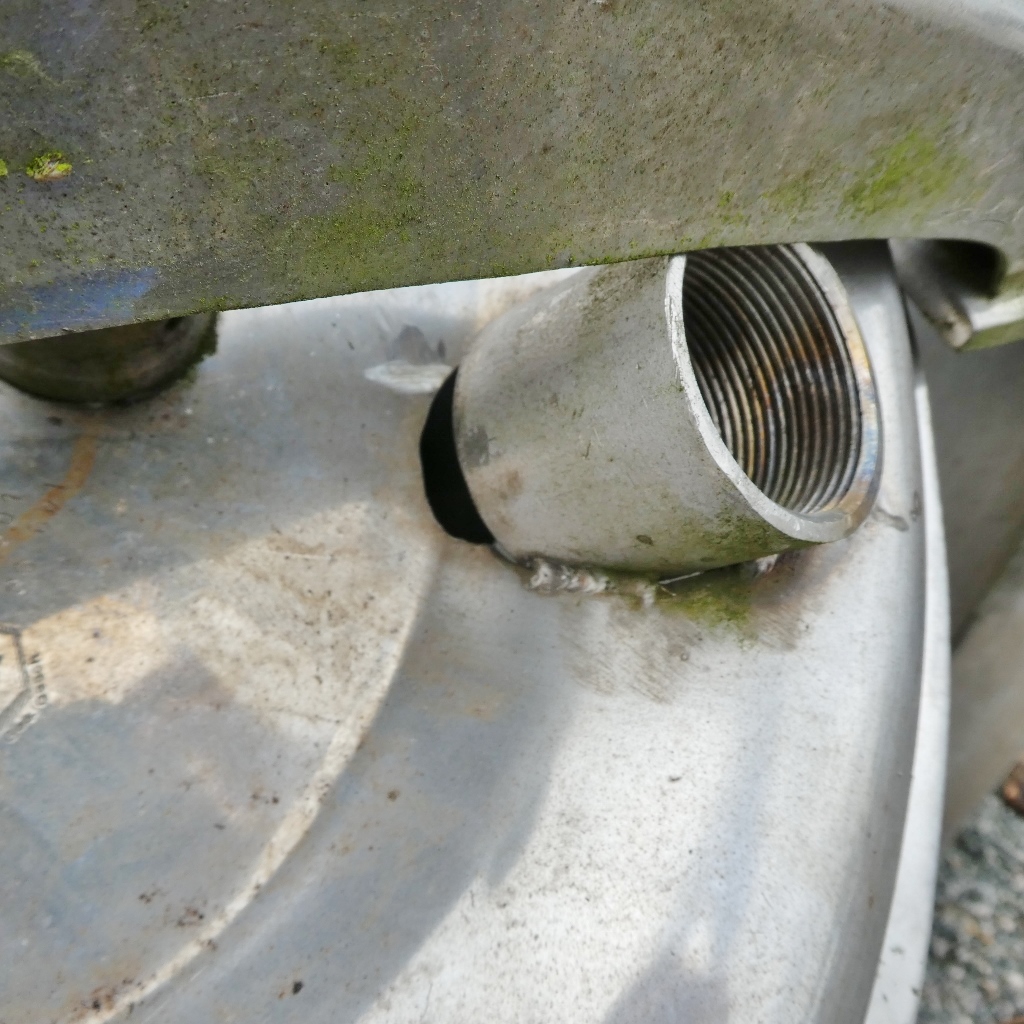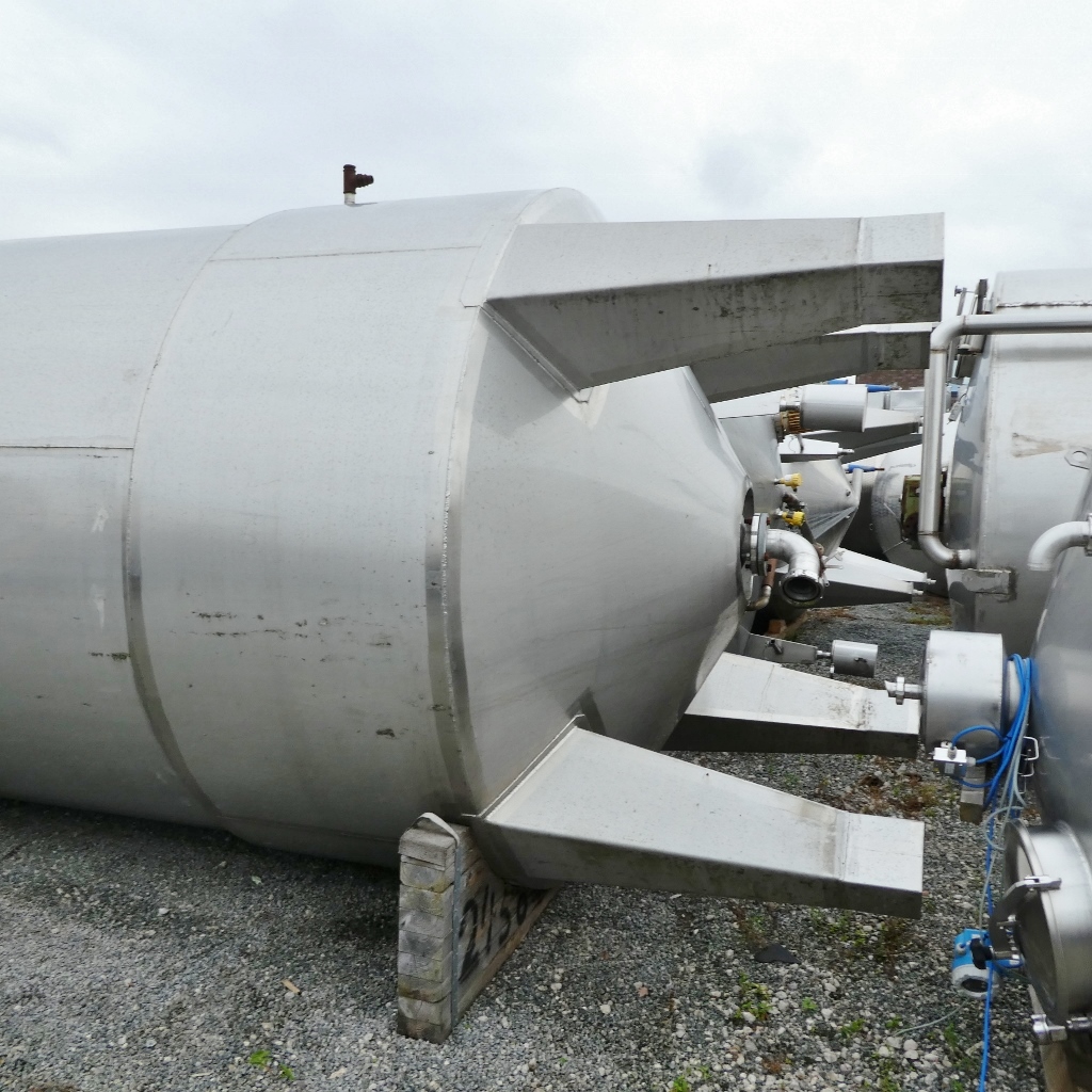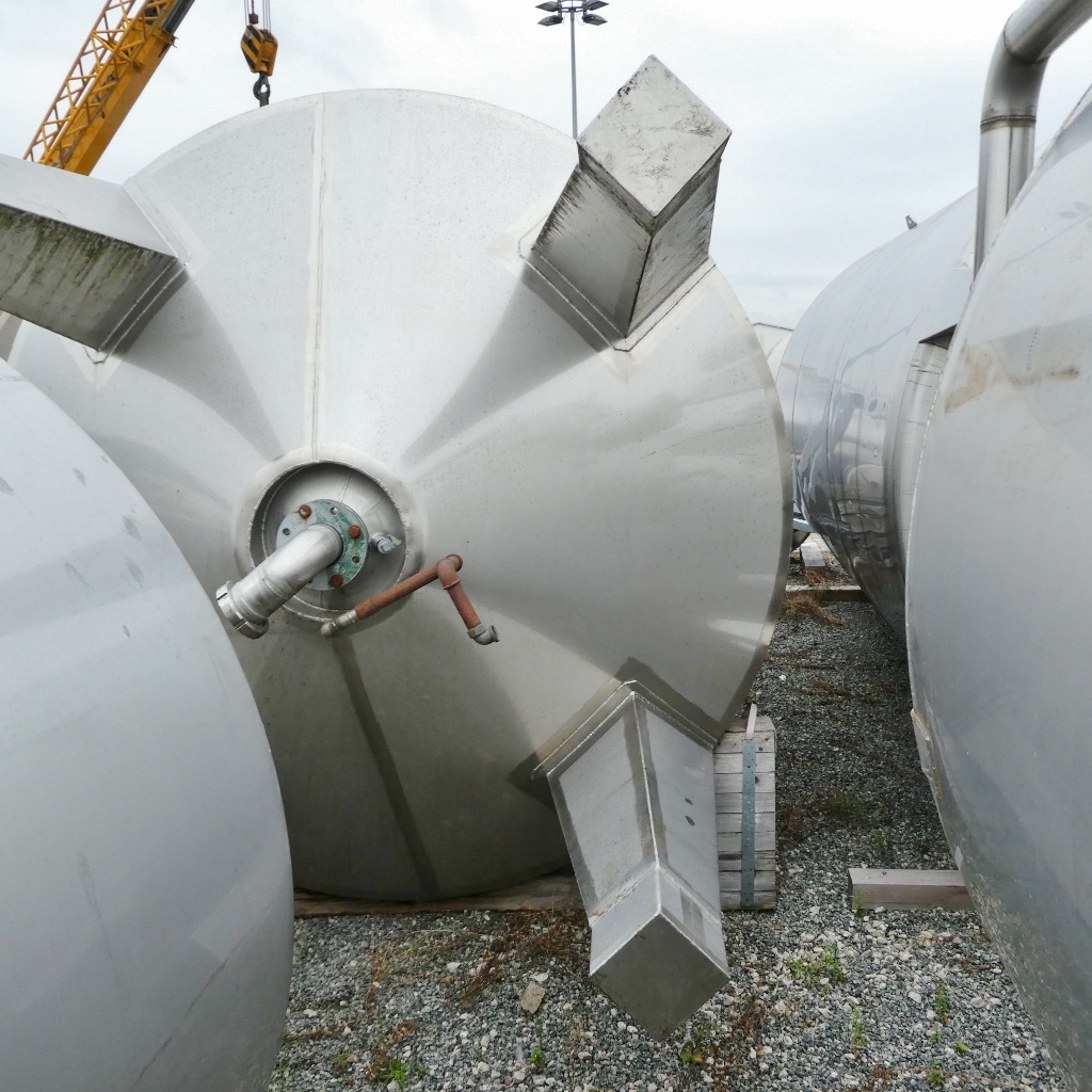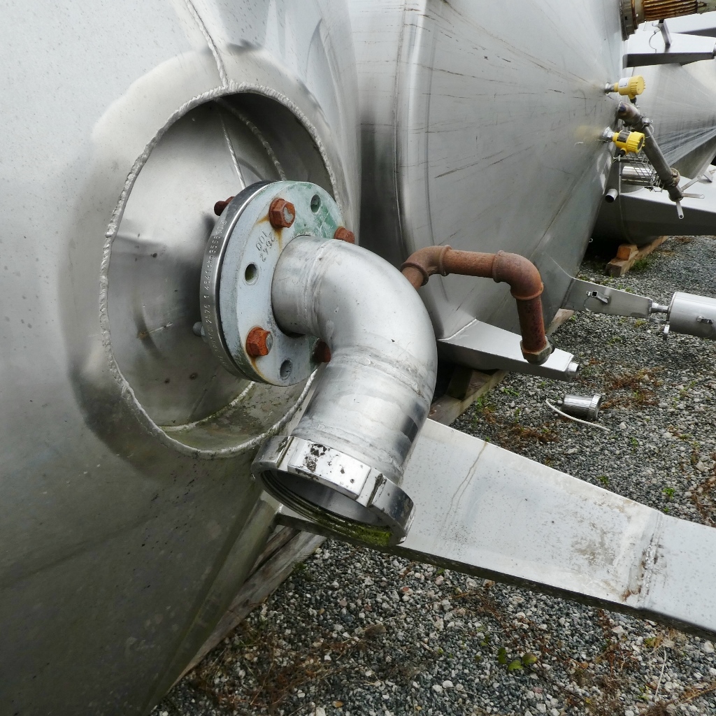Double jacket, Aisi 304 for heating/cooling around the lower cylinder area and the lower bottom; lower inner bottom with dents; Manhole approx. 320 x 420 mm (1 connection in the manhole cover torn;