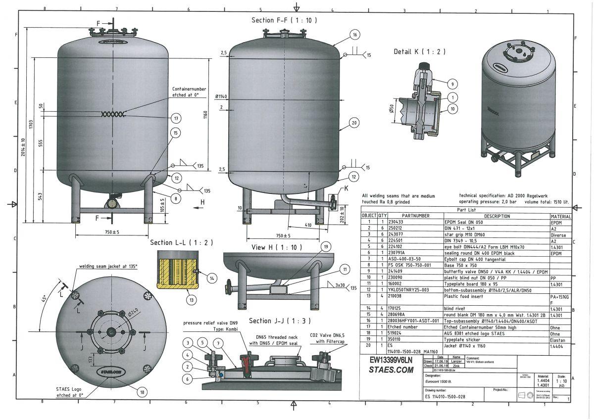 1500 liter tank i Syrafast 316