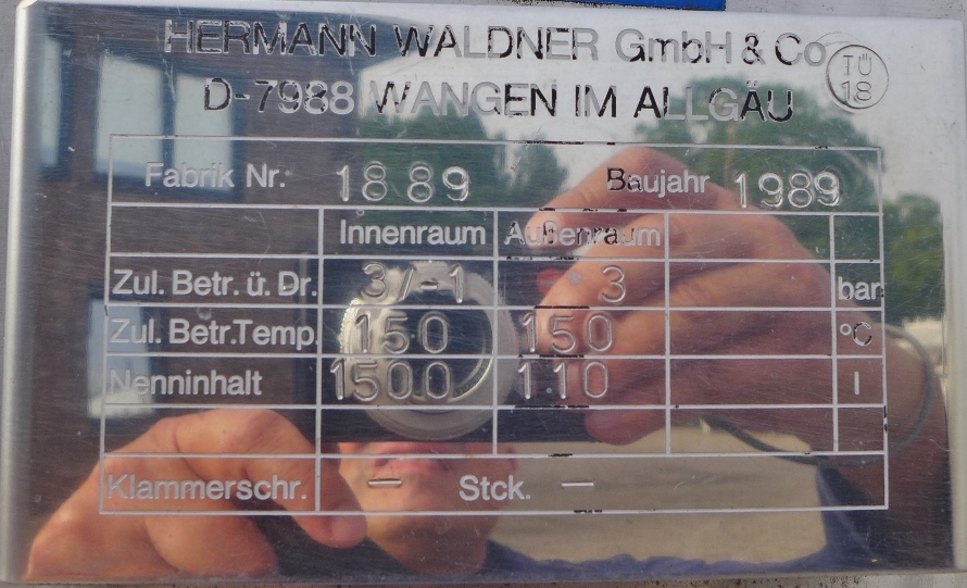 Manhole diameter approx. 490 mm; several stainless steel sheets have been welded into the insulating jacket by the previous operator (see photos); we can’t give any guarantees about the