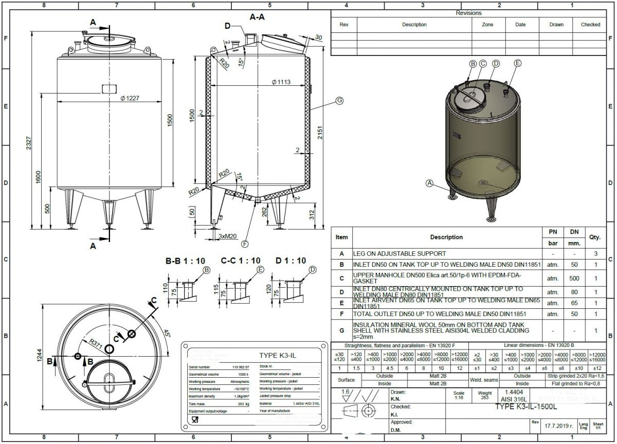 1500 liter tank i Syrafast 316