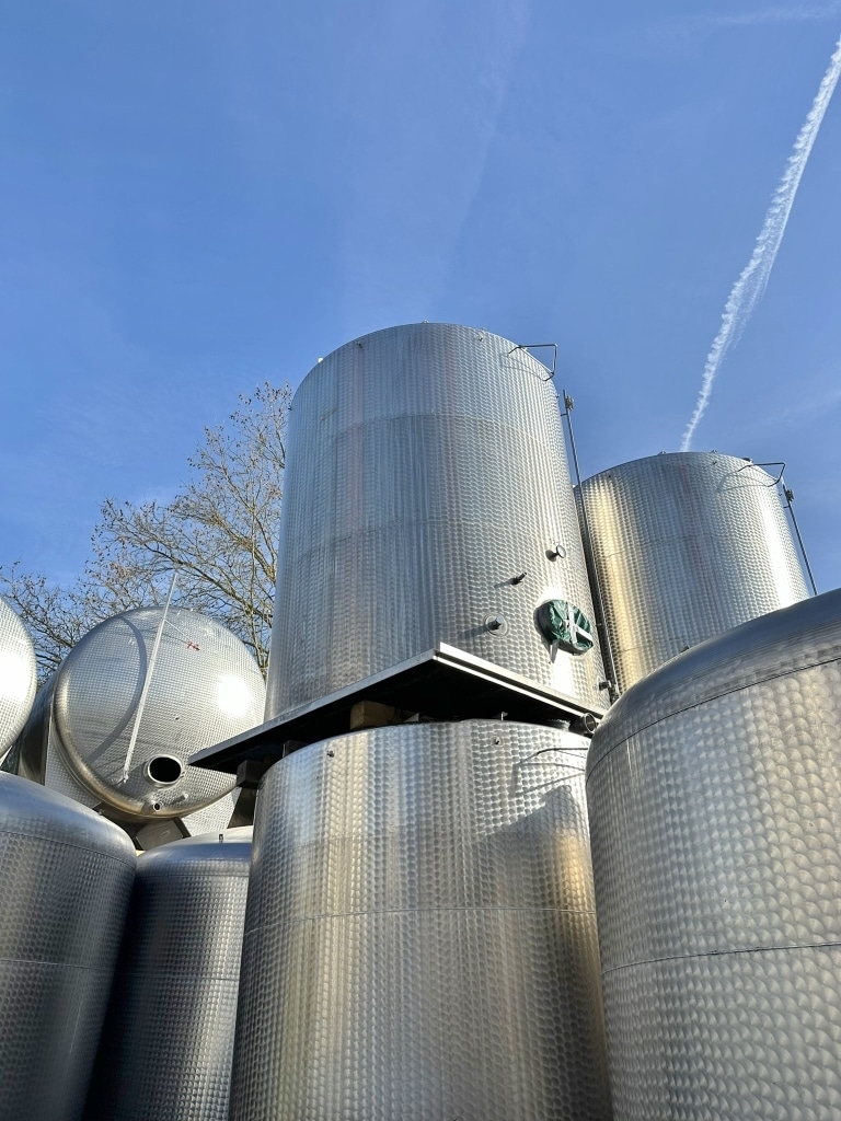 Wine storage; 1 manhole approx. 320 x 420 mm in the cylinder; total height according to drawing; lower bottom with slope to the outlet with cup (for installation, an appropriate foundation would