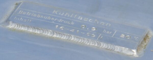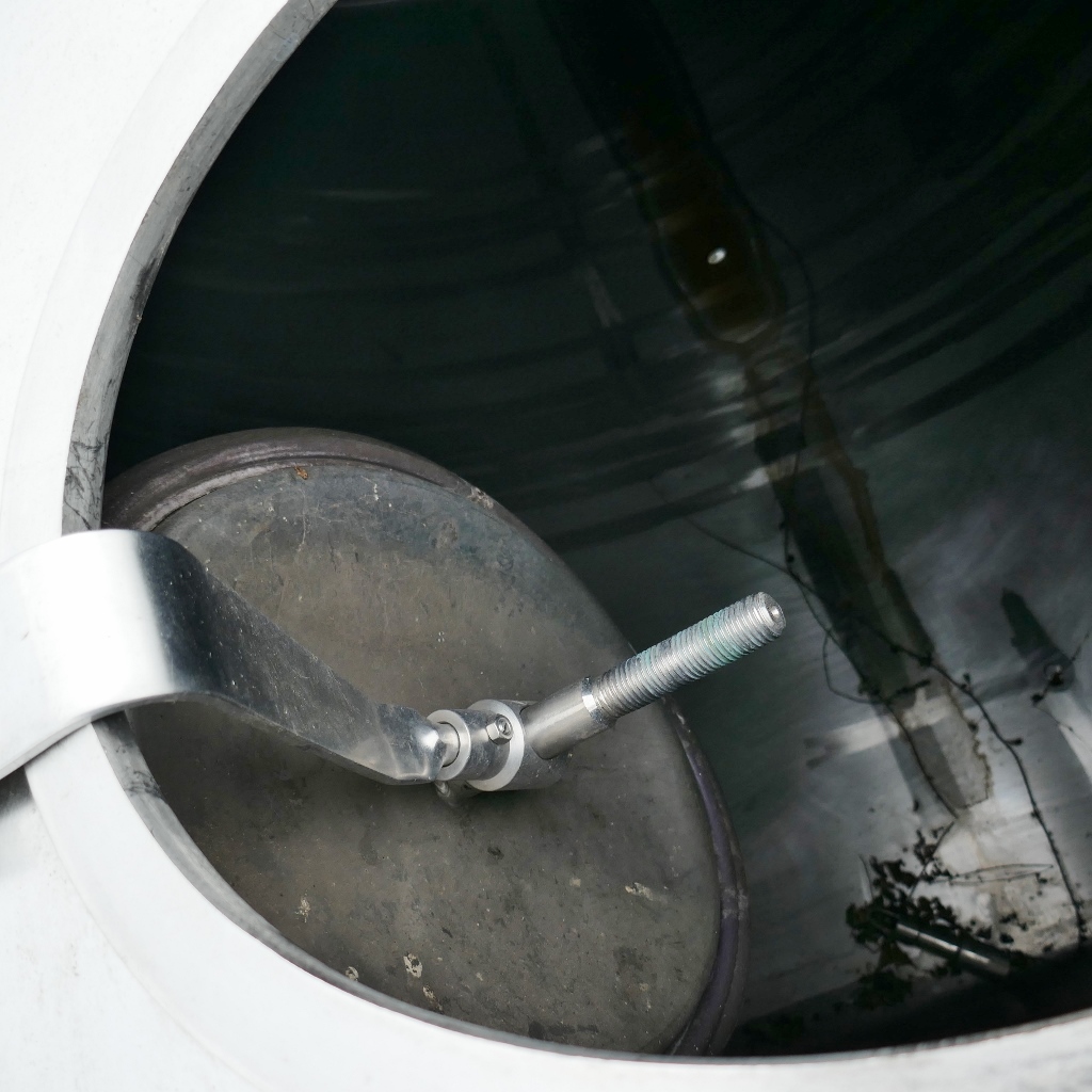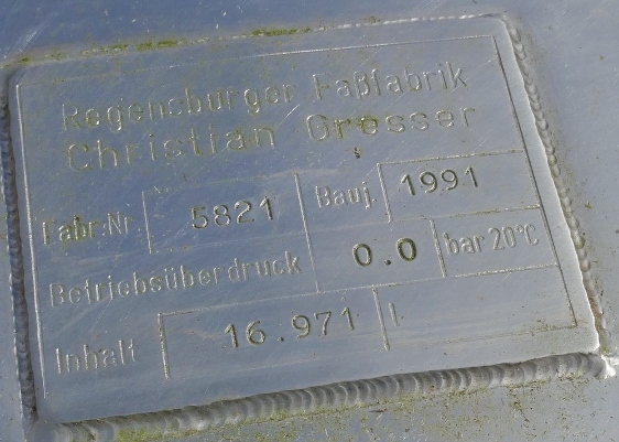 Half coil 3 systems (16, 41 & 59 liters); small dents in the cylinder; Fasteners for the manhole cover are mostly missing; Ladder bracket bent (see photos); some residues of previous content