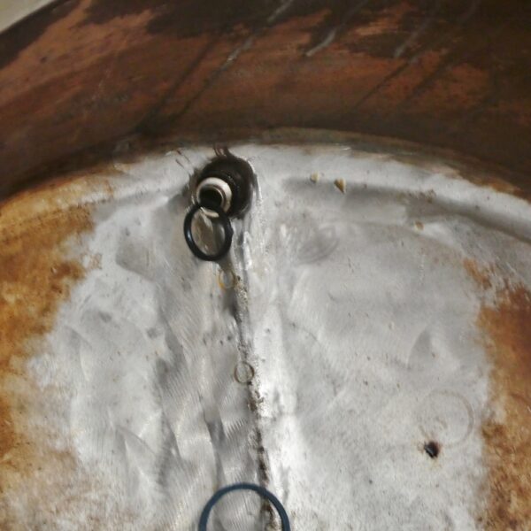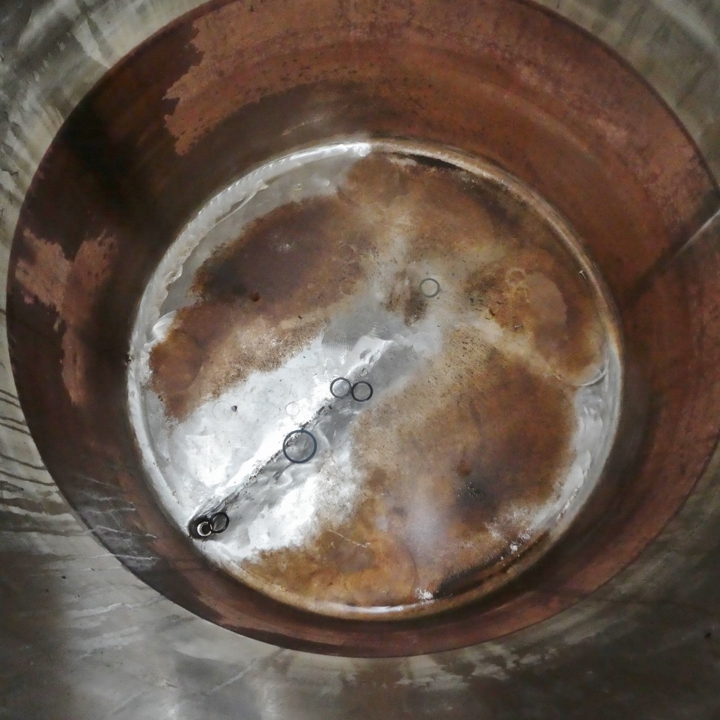 Spirits; Adhesions and metallic discoloration inside the tank; lower bottom with smaller dents