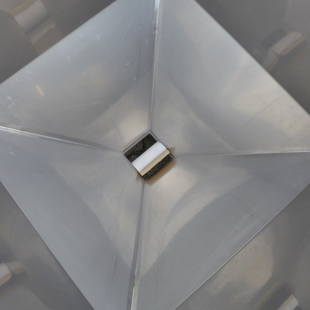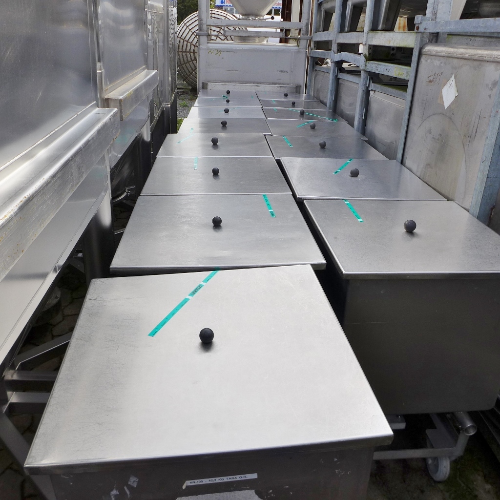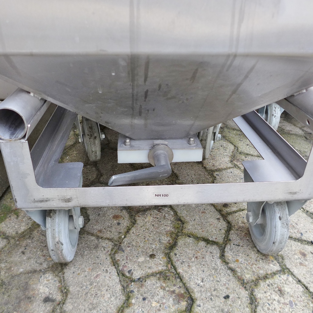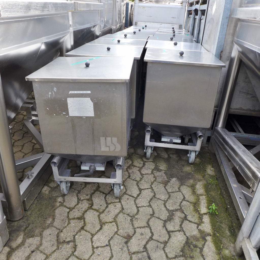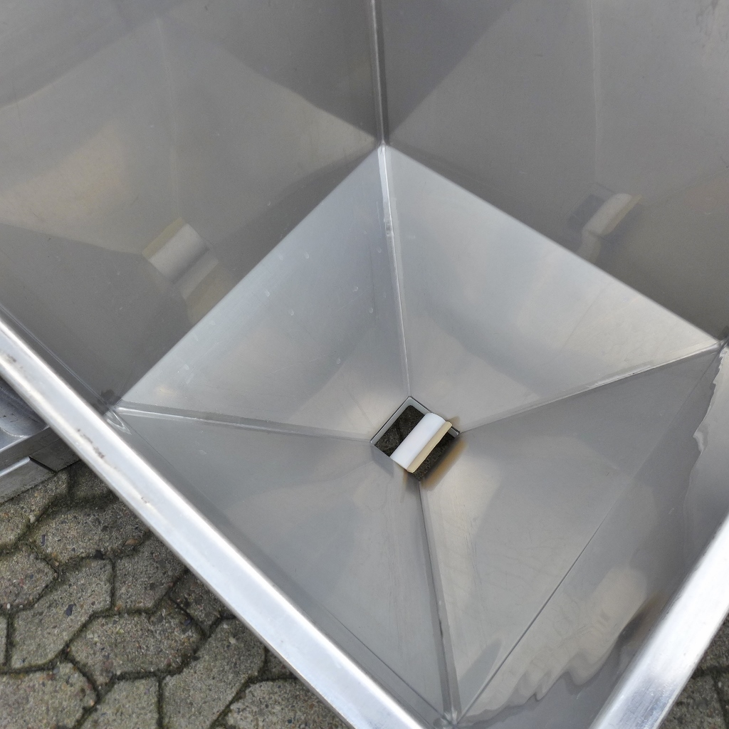Pharmacy; Tank loose on mobile frame, Aisi 304; Basic internal dimensions approx. 545 x 545 mm; wall height approx. 510 mm; Outlet approx. 90 x 90 mm with plastic components (probably Teflon)