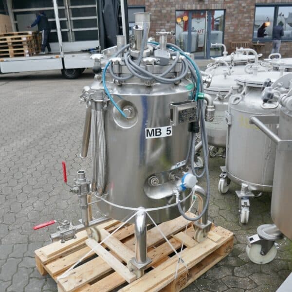 Pharmacy; 1 sieve insert and 4 welded fastening tabs inside the vessel; we can’t give any guarantees about the heating/cooling jacket