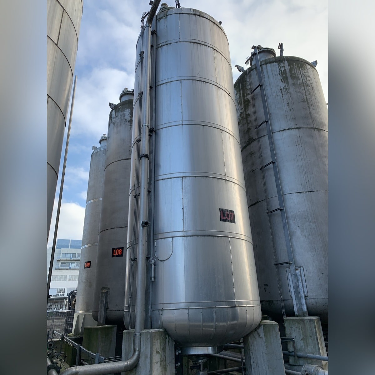 Extensive documentation available; tank by now already dismantled and warehoused horizontally; 1 tank with insulation cover, which is damaged and likely needs to be replaced; legs of the storage