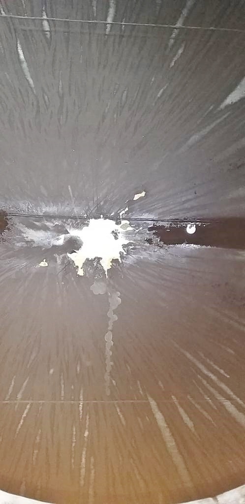 Phosphoric acid; Manhole diameter appr. 500 mm; 1 welded and 1 loose bearing shell, Fe; protective coating on the outside of the tank; adhesions inside the tank