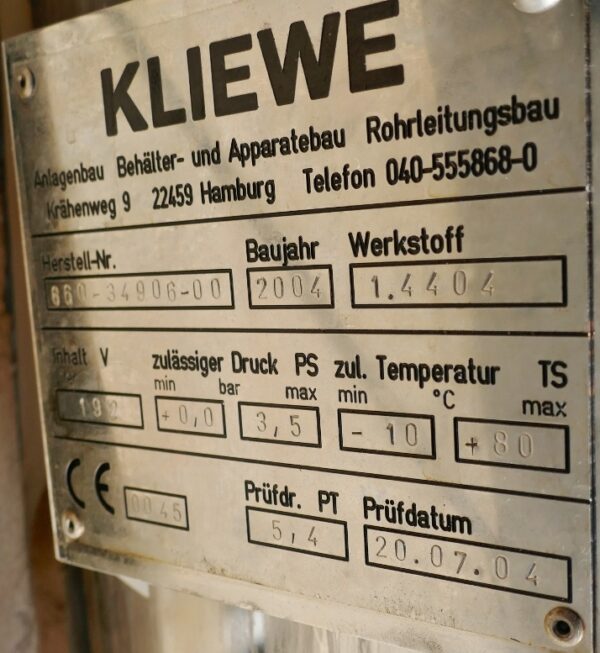 192 liter tank i Syrafast 316