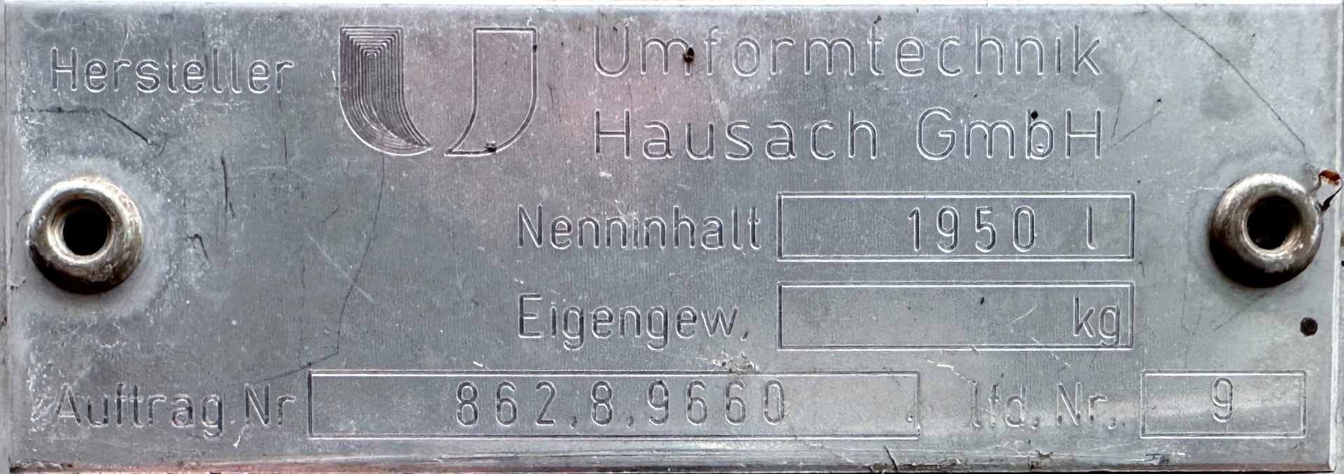 available from us made of aluminum (#9302);; some residues of previous content