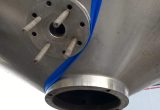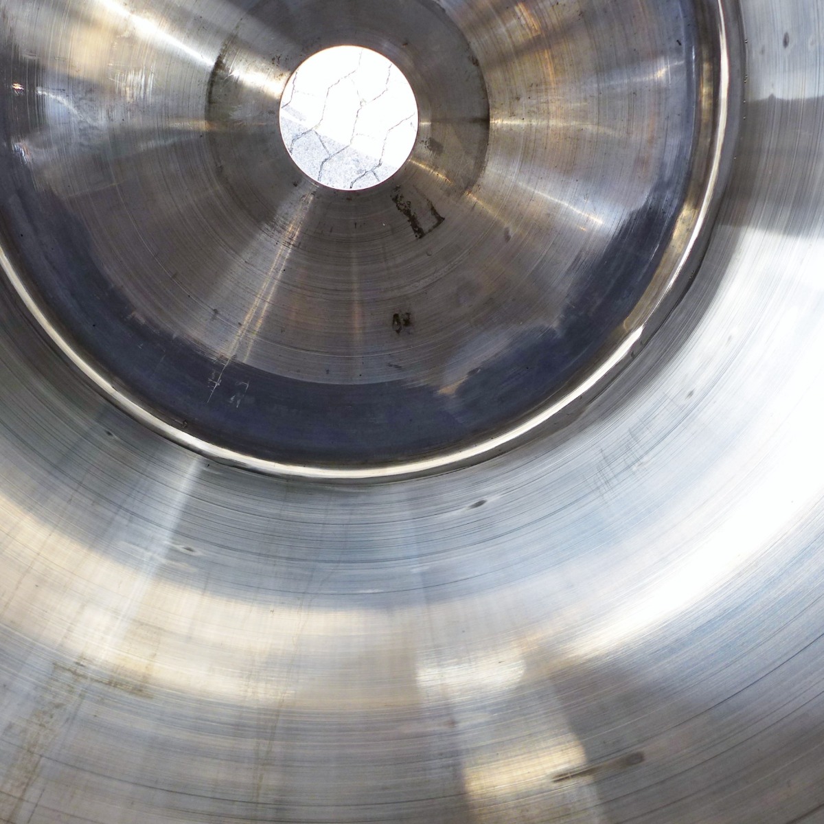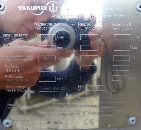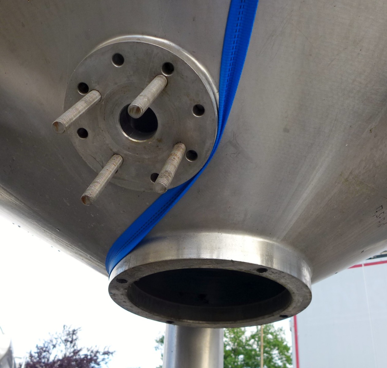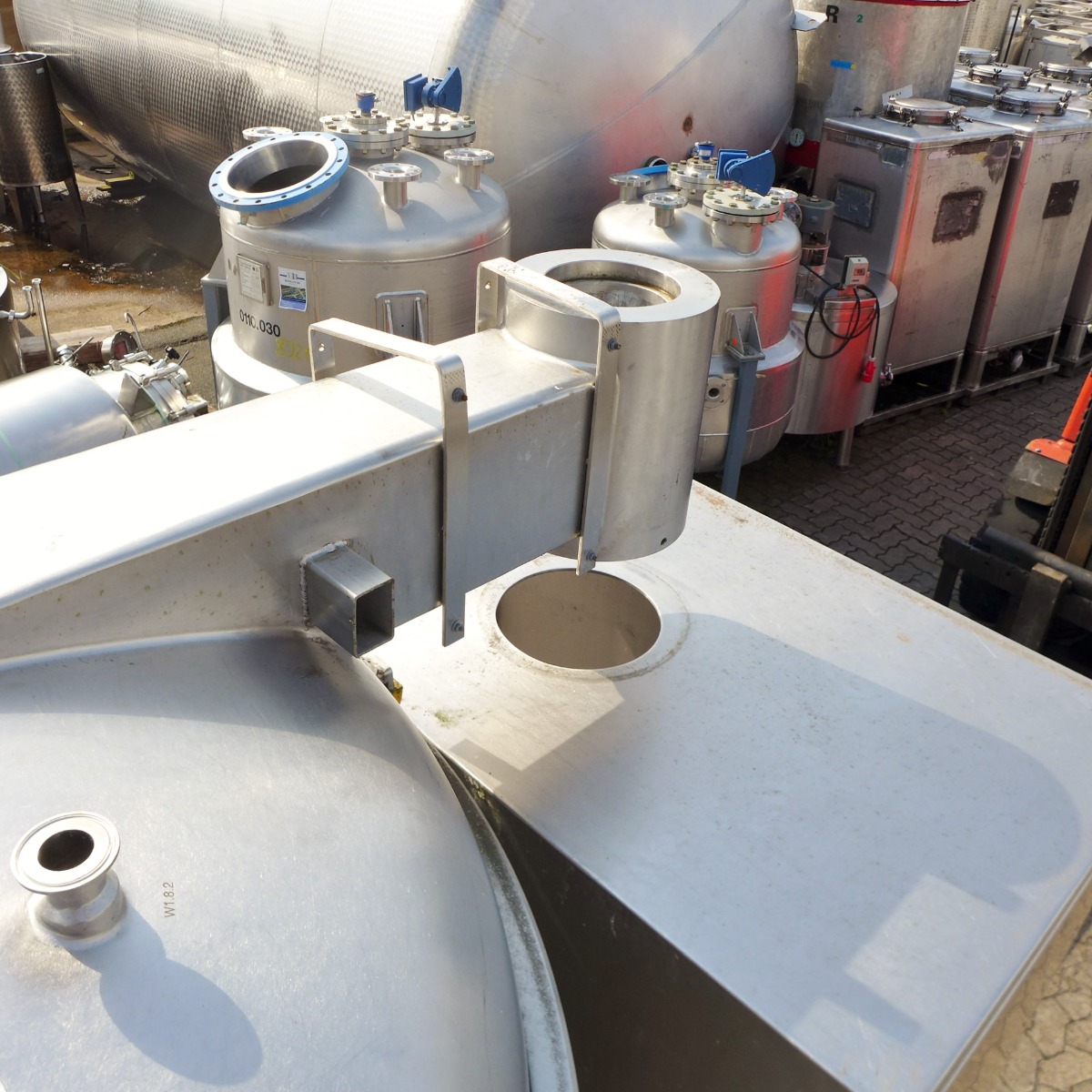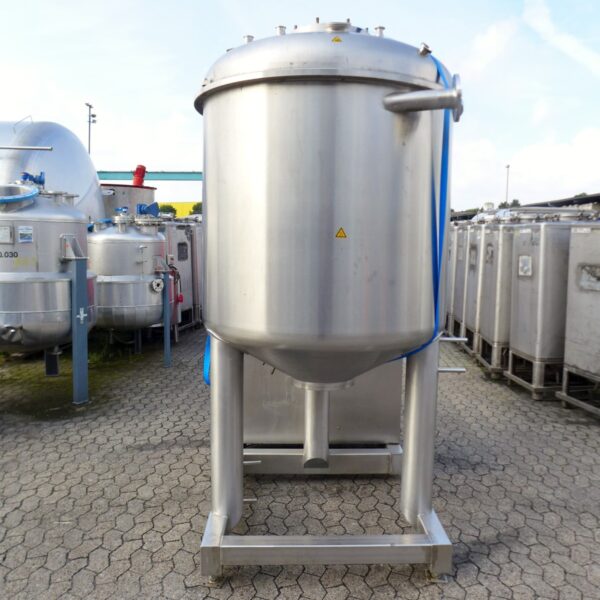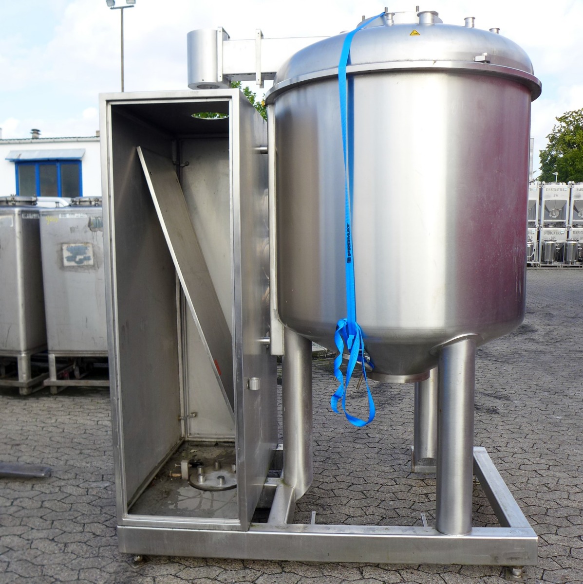 Height-adjustable frame made of V2A; various connections in the upper bottom; upper bottom can be moved with a lifting/pivoting device, which is no longer available; Agitator flange centered in the