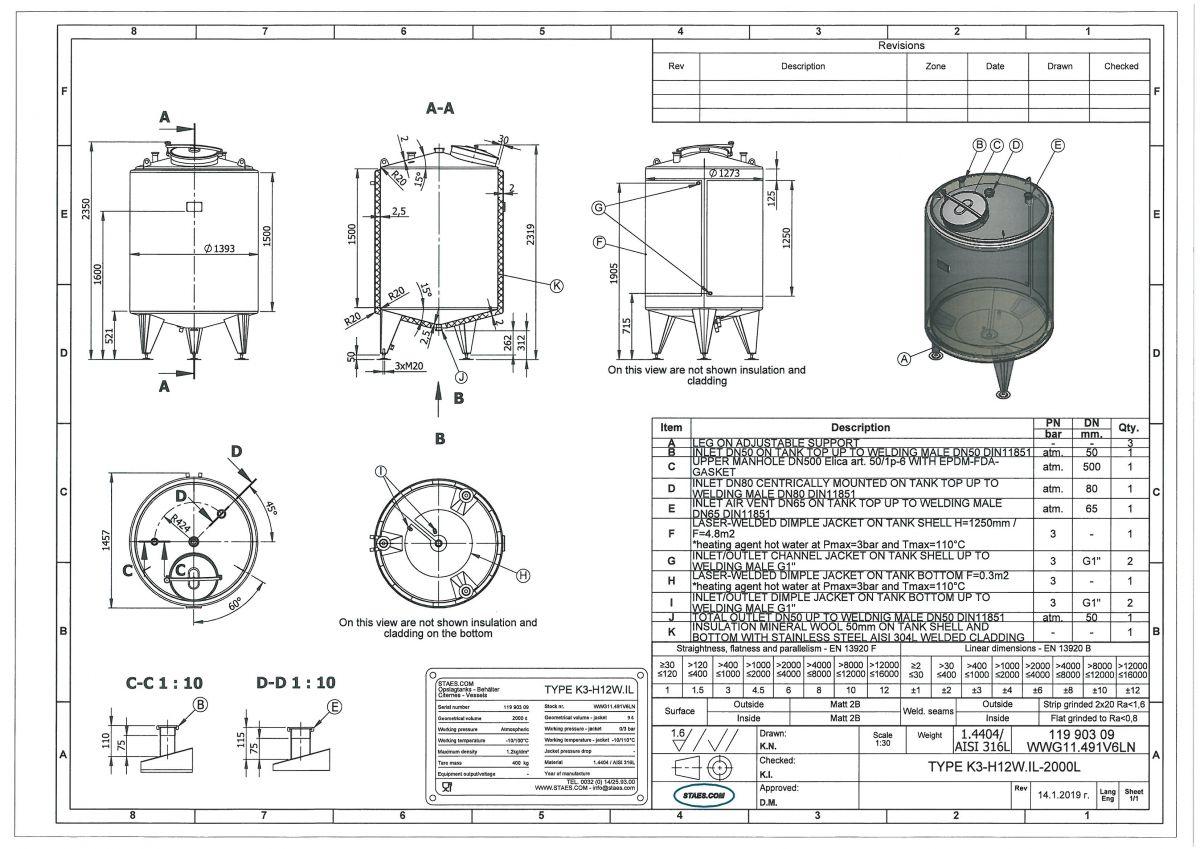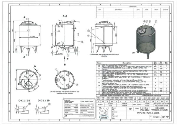Ångtryck värmeväxlare: 0,50 Bar Ångtryck värmeväxlare botten: 0,50 Bar Anslutning värmeväxlare: 1" BSP Anslutning värmeväxlare botten: 1" BSP Arbetstemperatur värmeväxlare cylinder: 110 °C Arbetstemperatur värmeväxlare botten: 110 °C Kontaktyta botten: 0,30 Kontaktyta cylinder: 4,80 m² Position värmeväxlare: the complet cilinder Typ av värmeväxlare på cylinder: dimple-jacket Typ av värmeväxlare på botten: dimple-jacket Vattentryck värmeväxlare: 3 Bar Vattentryck värmeväxlare botten: 3 Bar