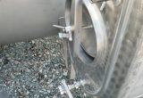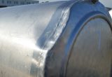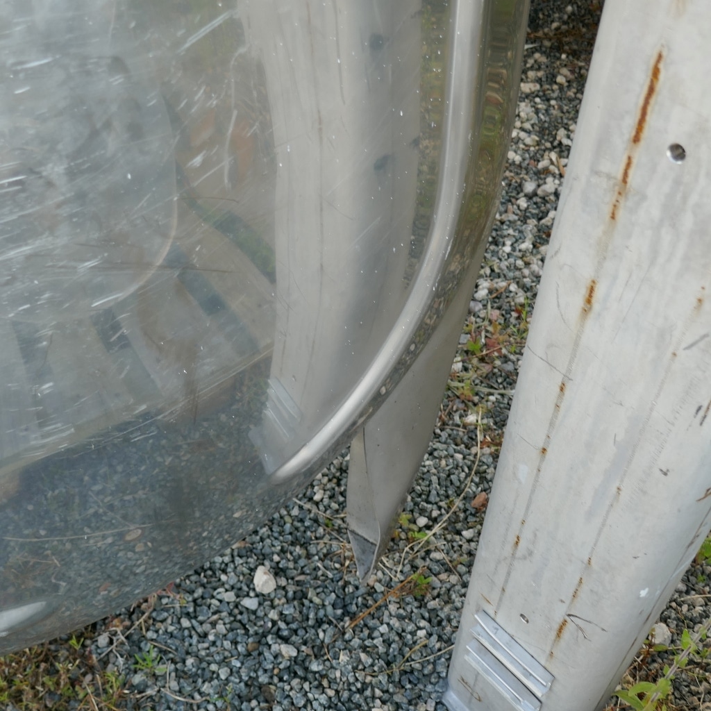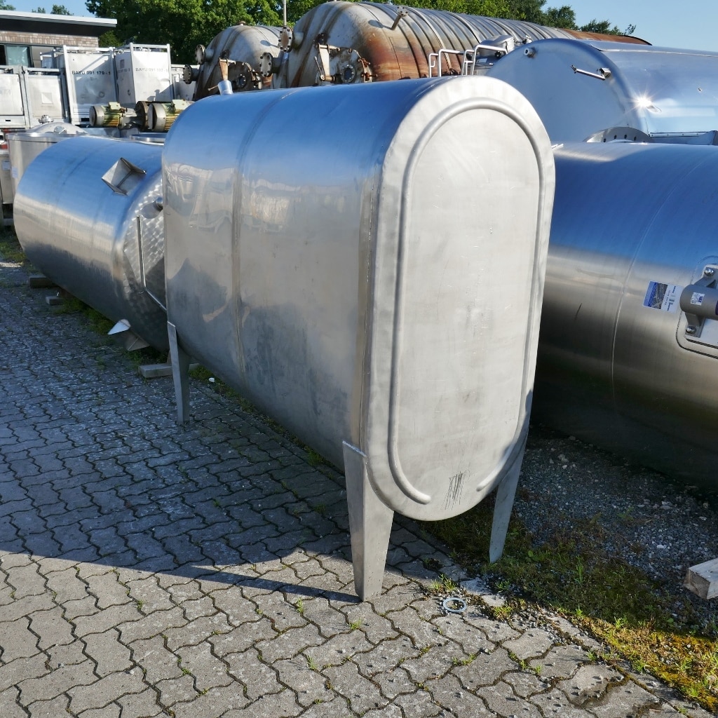 DIN 11851 (with butterfly valve)) and manhole seals were installed; tank feet are partially slightly bent; 1 tank with several dents