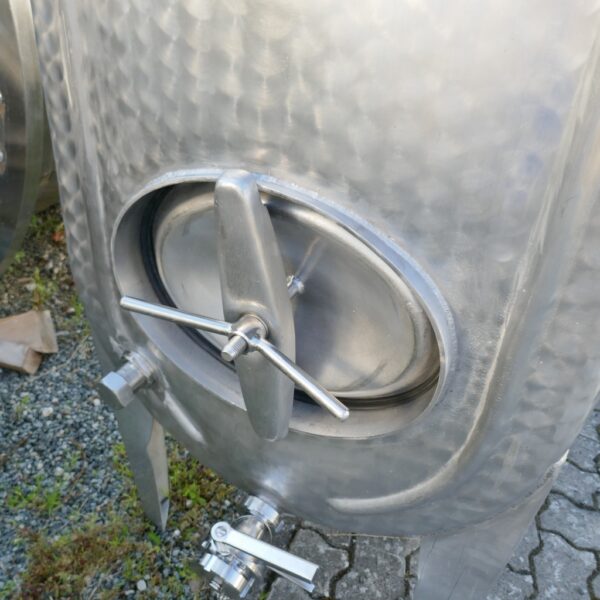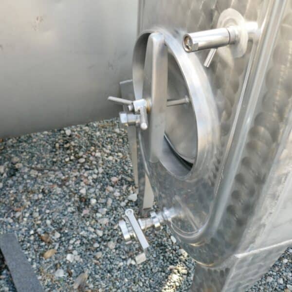 Wine storage; 1 manhole approx. 320 x 420 mm in the front bottom; tanks were professionally cleaned and overhauled in 2024; brand new residual drain valves (screwed on to enlarge the outlet to DN 50