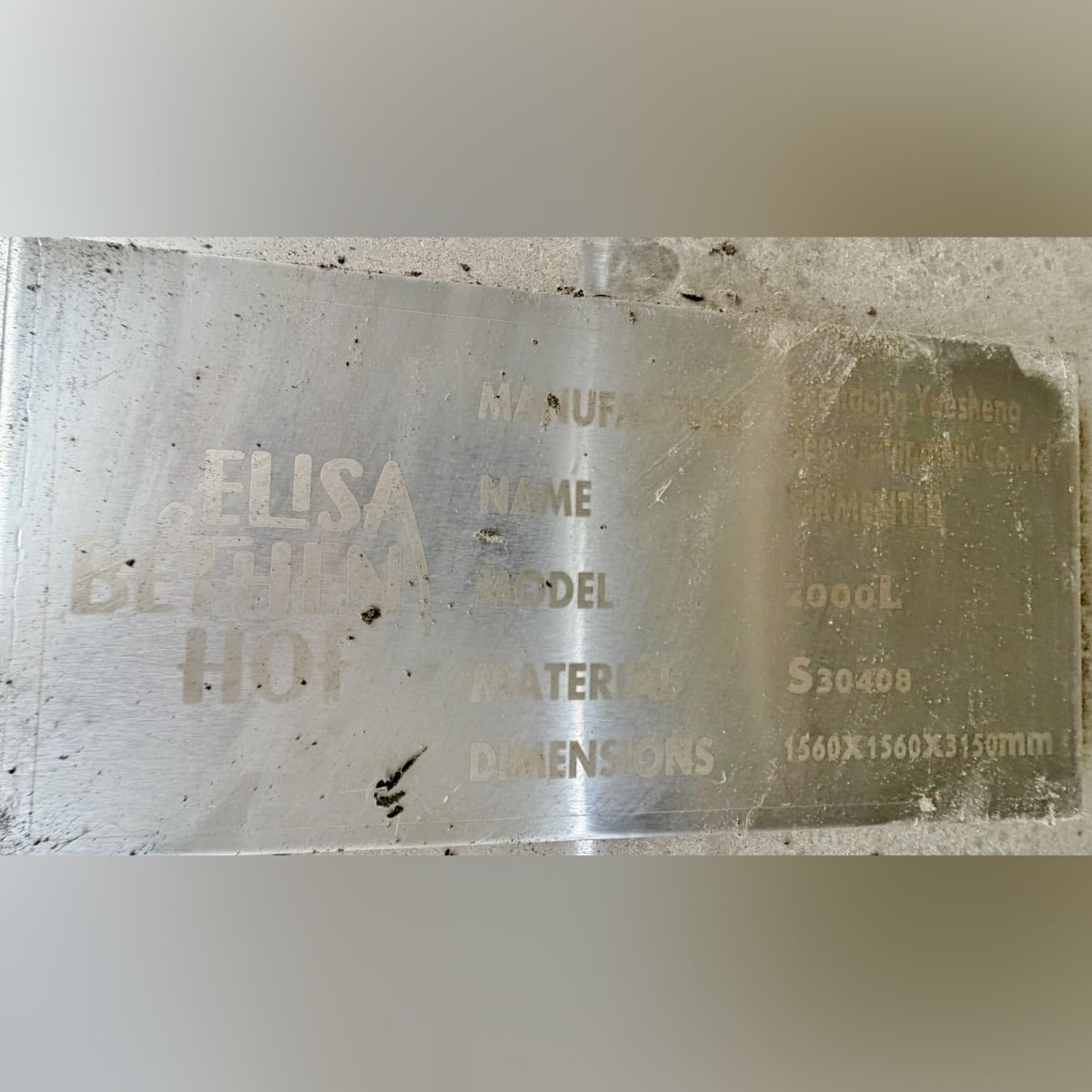 2000 liter tank i Rostfritt 304