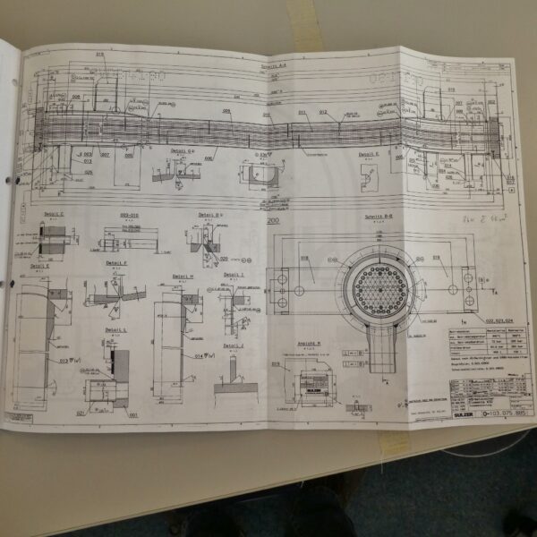 cylinder made of heat-resistant steel: permissible working pressure: 72 bar; permissible working temperature: 300° C; capacity: 400 liter; tubes made of titan II: permissible working pressure: 200