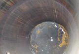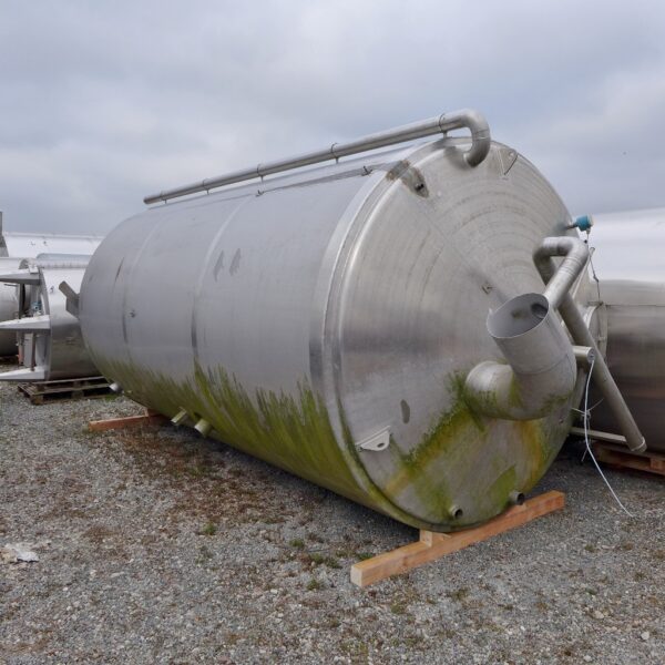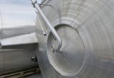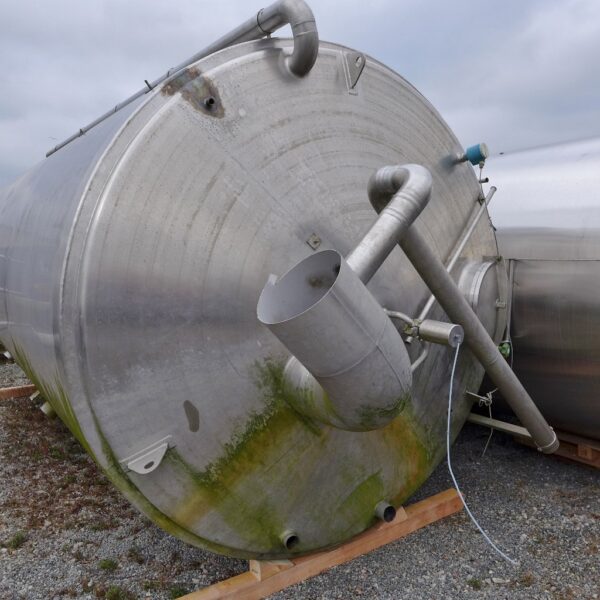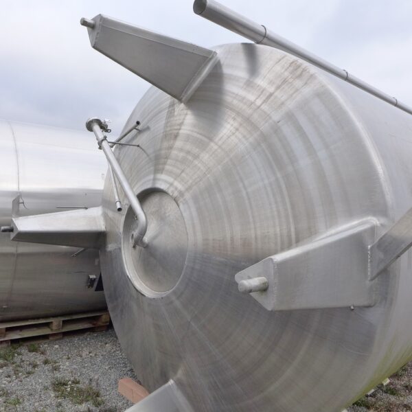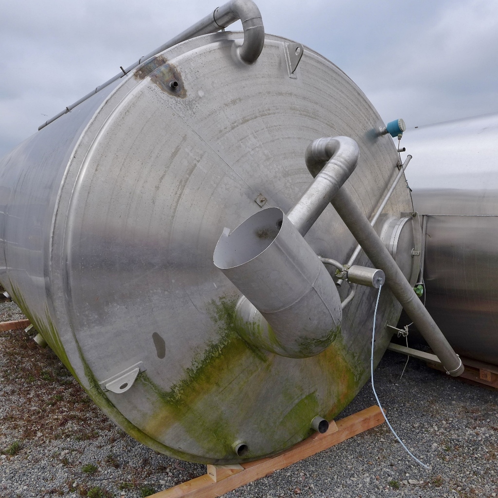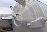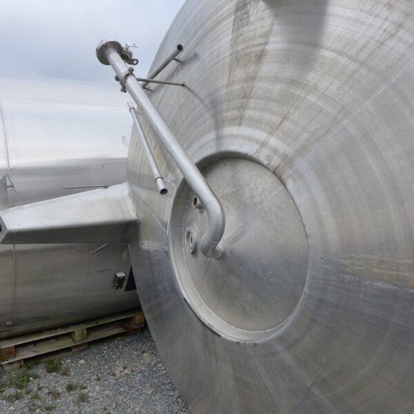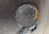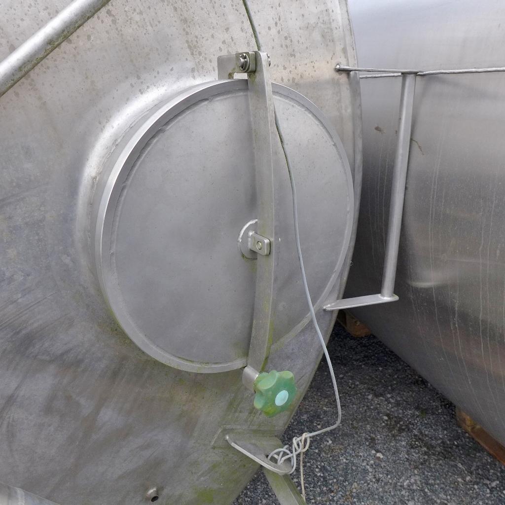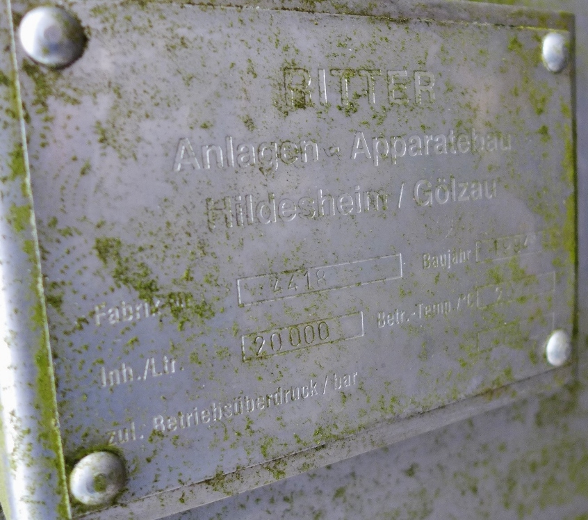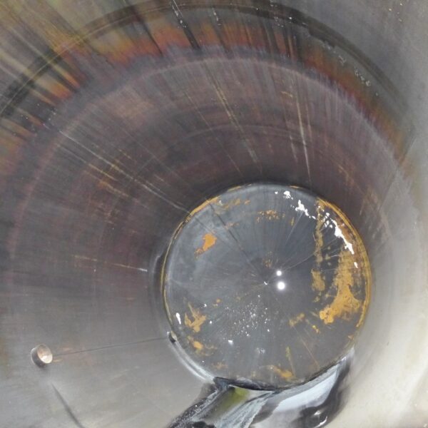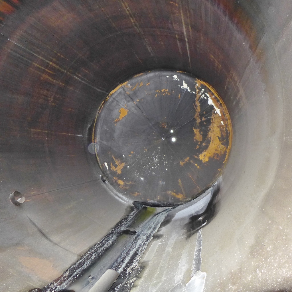 Cip-tank; Manhole diameter 420 mm; various pipes on the tank (mostly cut off); Adhesions inside the tank ; Metallic discolouration inside
