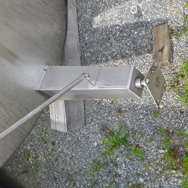 Hand lever on the butterfly valve of the outlet is missing; bump at the cylinder; we can’t give any guarantees about the agitator