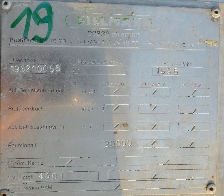 water-soluble paints; 1 tank with 1 dent in the cylinder; the manhole cover is missing by the other tank; some residues of previous content