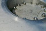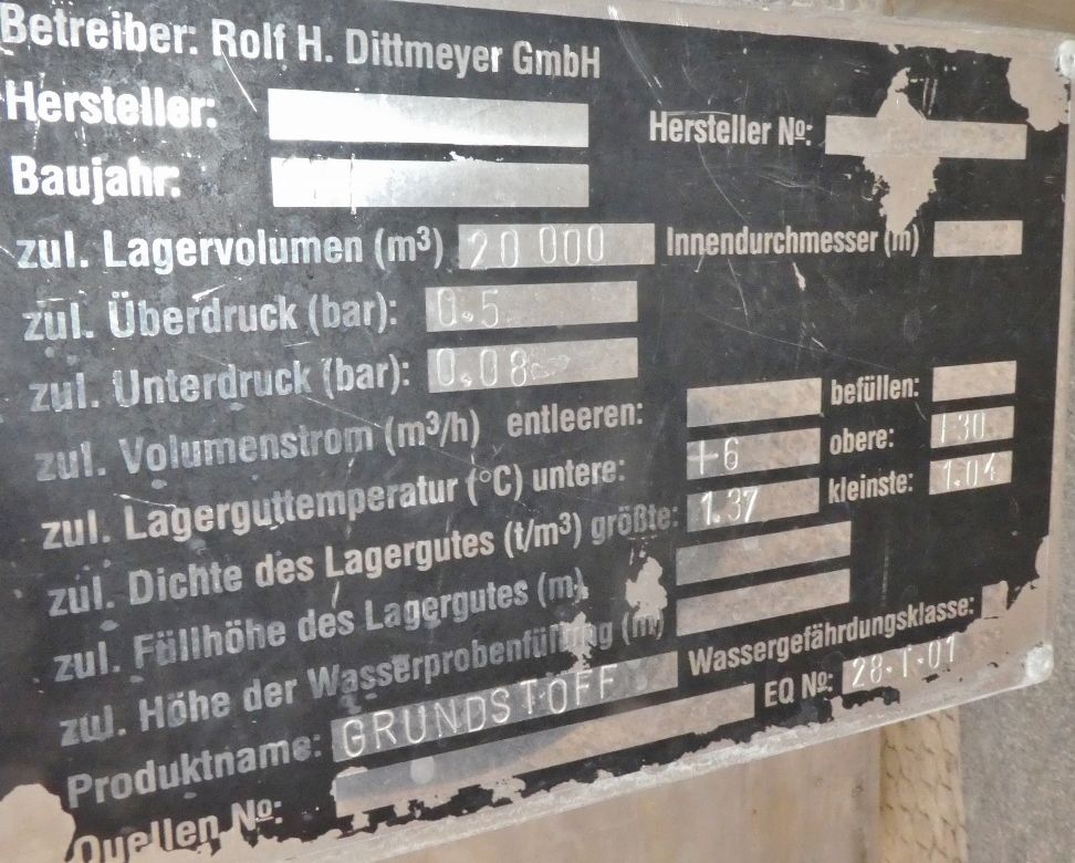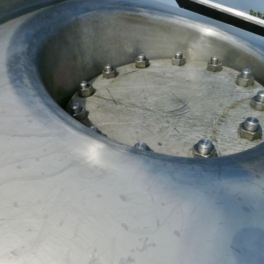 fruit juice industry; 1 tank with a smaller dent in the cylinder; mannhole appr. 340 x 440 mm; pipe end cut flush