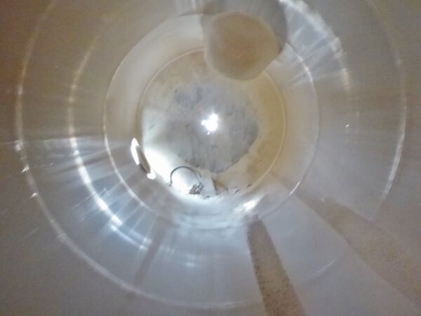 Lebensmittel; kleinere Beulen im Isomantel; stärkere Anhaftungen innen; seitl. RW-Flansch vermutlich zugeschweißt; pipe end cut flush