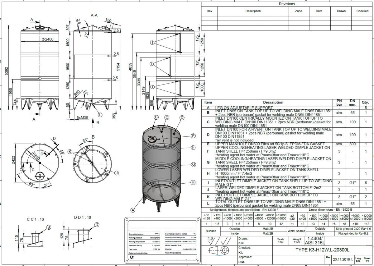 Ångtryck värmeväxlare: 0,49 Bar Ångtryck värmeväxlare botten: 0,49 Bar Anslutning värmeväxlare: 1" BSP Anslutning värmeväxlare botten: 1" BSP Arbetstemperatur värmeväxlare cylinder: 100 °C Arbetstemperatur värmeväxlare botten: 100 °C Hydrauliskt provtryck botten: 4,50 Bar Hydrauliskt provtryck: 4,50 Bar Kontaktyta botten: 2 Kontaktyta cylinder: 26 m² Position värmeväxlare: the complet cilinder Typ av värmeväxlare på cylinder: dimple-jacket Typ av värmeväxlare på botten: dimple-jacket Vattentryck värmeväxlare: 3 Bar Vattentryck värmeväxlare botten: 3 Bar