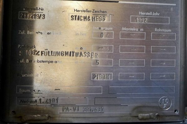 Textile industry; Wall thickness of the bottom at the manhole: 4 mm; Wall thickness of the other bottom: 3 mm; insulation partly no longer complete; Insulating jacket partially detached or no longer