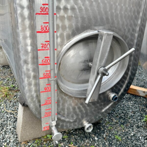 fruit juice; 2 loose concrete saddles; 1 manhole approx. 340 x 440 mm in the front bottom; manhole seal missing; Inner length: approx. 2,160 mm; Inner width: approx. 705 mm; Interior height: approx.