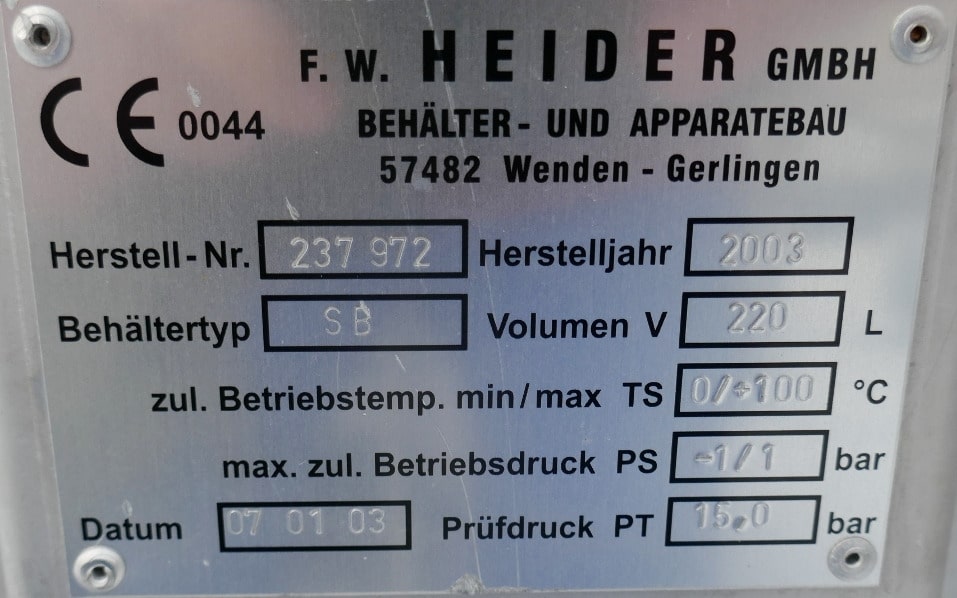 220 liter tank i Syrafast 316