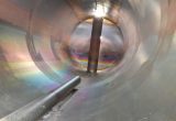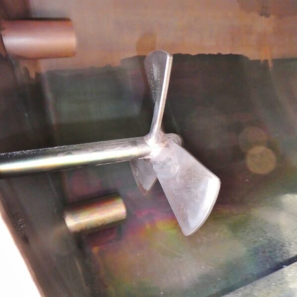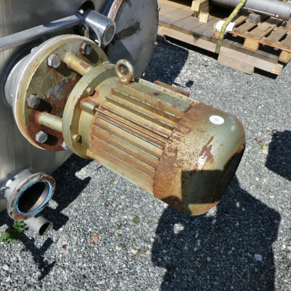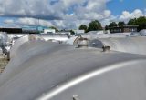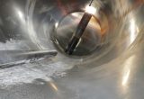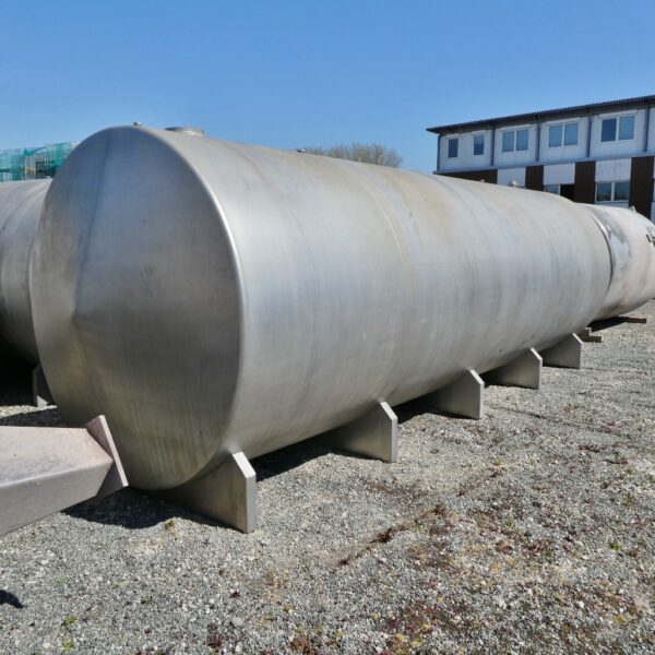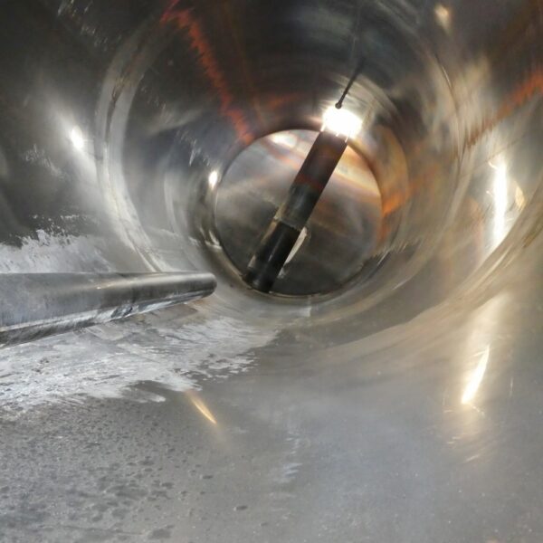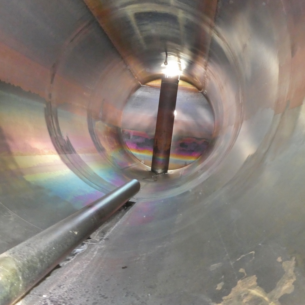 Cip-tank in a brewery; 1 manhole diameter 400 mm in the front bottom; outlet slightly bent; Pipelines inside; metallic discolourations inside (see photos) ; some residues of previous content;pipe