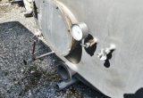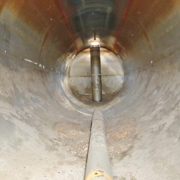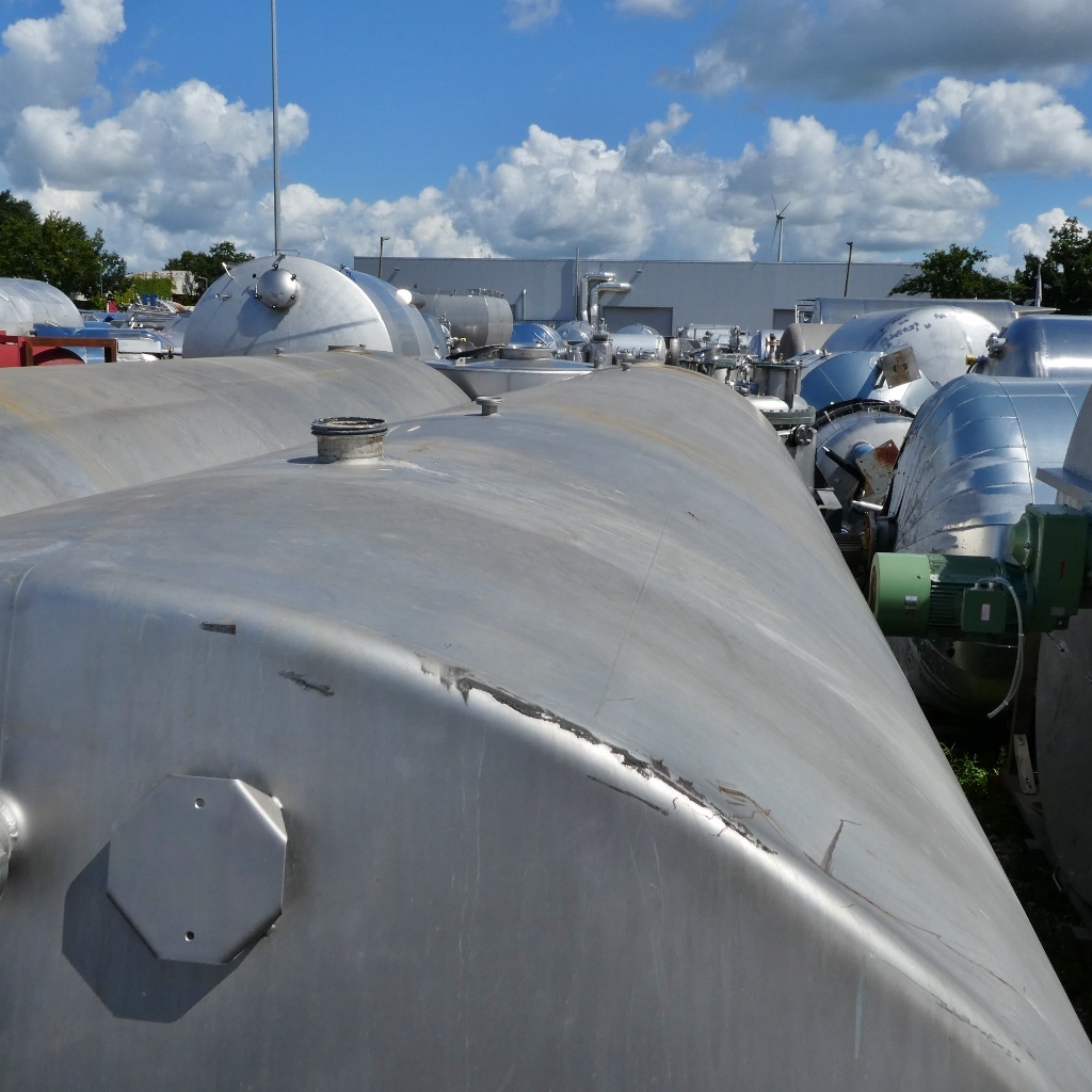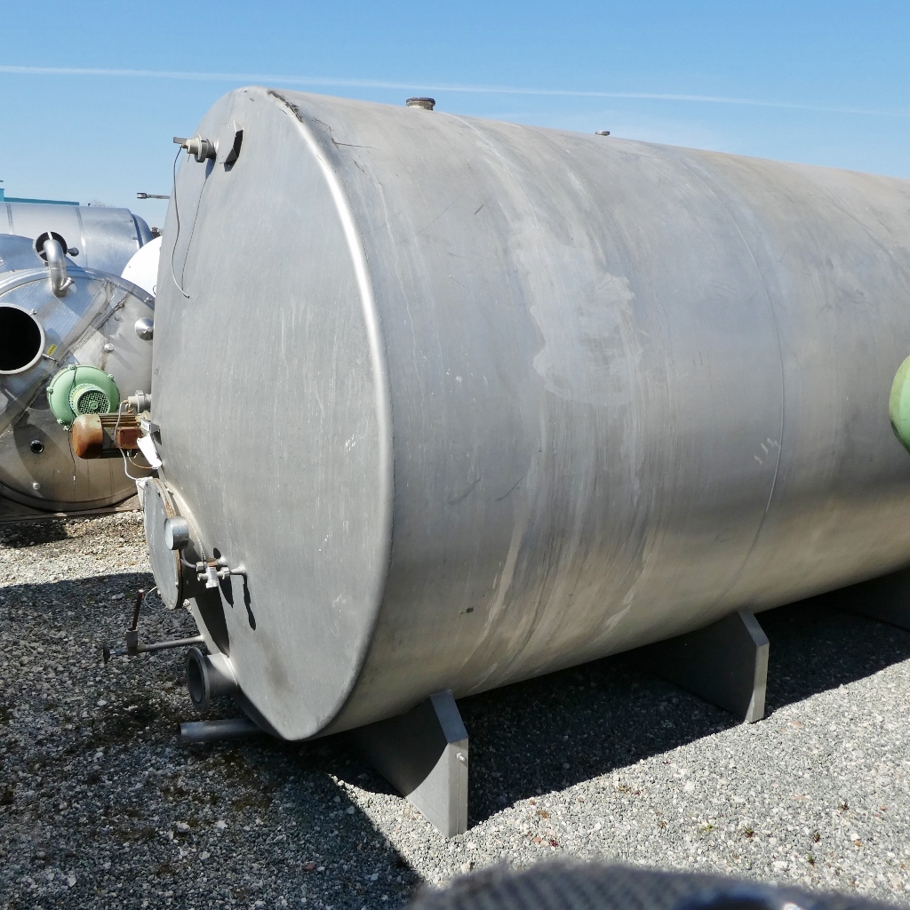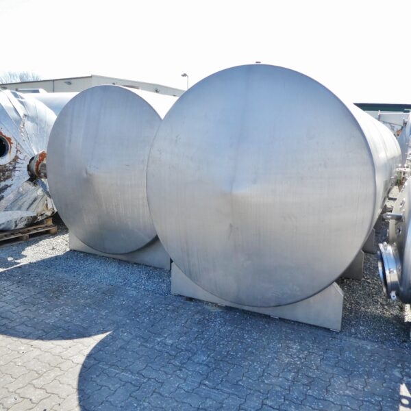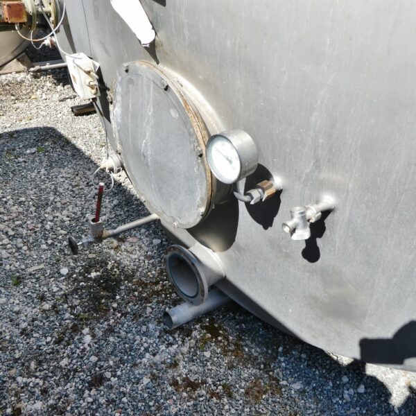 Cip-tank in a brewery; 1 manhole diameter 400 mm in the front bottom; 1 smaller dent in the insulation jacket; Pipelines and adhesions (presumably lime) inside (see photos) ; pipe end cut flush