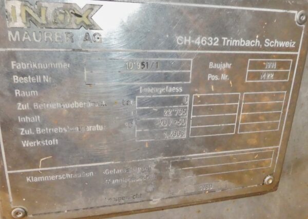 Chemistry; 1 pipe inside the tank (see photos); some residues of previous content;manhole cover is missing