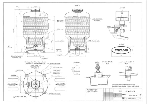 Anslutning värmeväxlare: 1/2" Anslutning värmeväxlare botten: 1/2" Arbetstemperatur värmeväxlare cylinder: 80 °C Arbetstemperatur värmeväxlare botten: 80 °C Hydrauliskt provtryck botten: 5,20 Bar Hydrauliskt provtryck: 5,20 Bar Position värmeväxlare: the complet cilinder Typ av värmeväxlare på cylinder: dimple-jacket Typ av värmeväxlare på botten: dimple-jacket Vattentryck värmeväxlare: 3 Bar Vattentryck värmeväxlare botten: 3 Bar