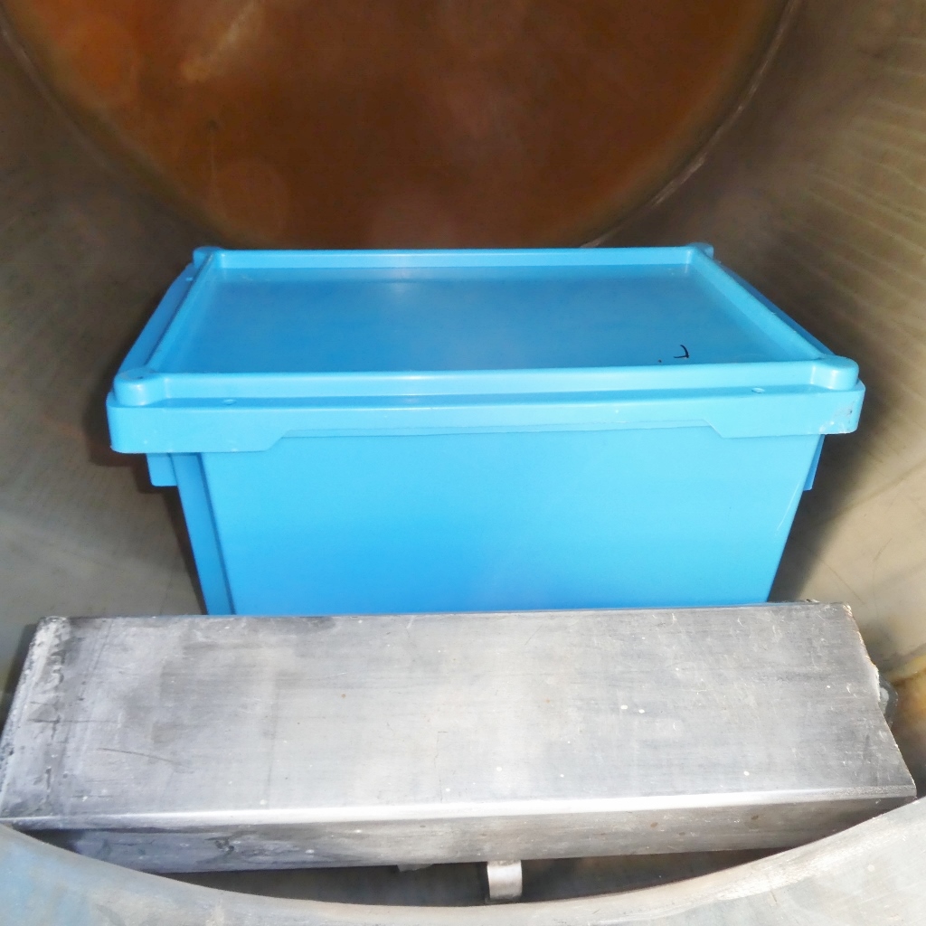 Pharmacy; Double jacket, Aisi 304 around the cylinder and lower bottom; lower heating connection was welded shut by the previous operator; 2 feet were cut off by the previous operator (are loosely