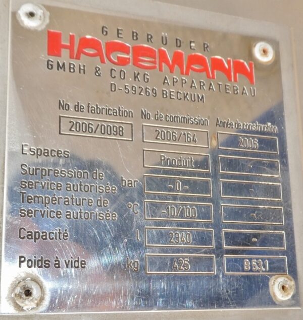 chemistry; metallic discolourations inside; support brackets, Aisi 304