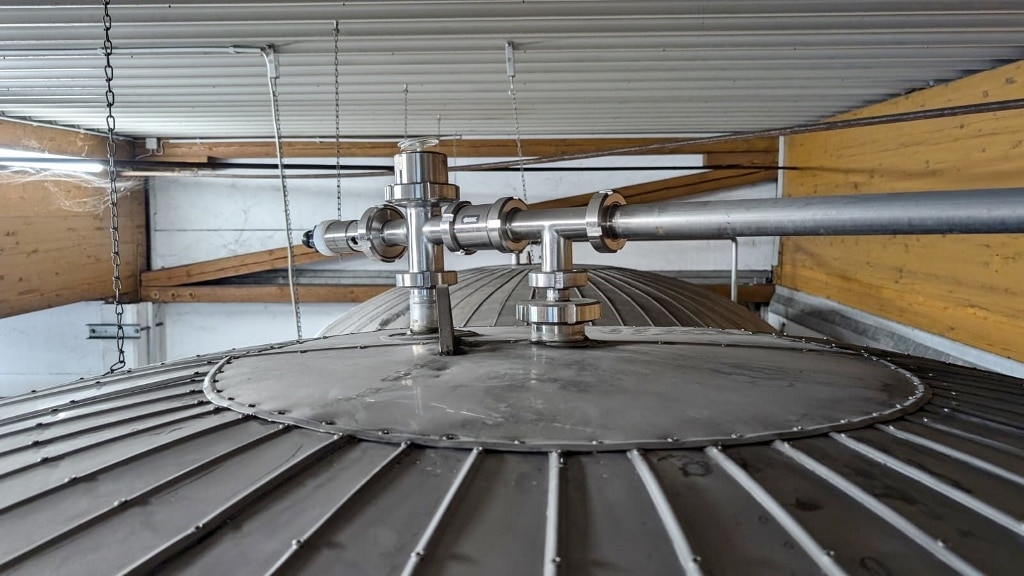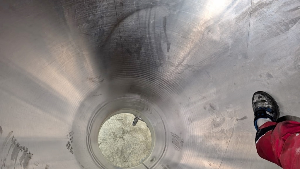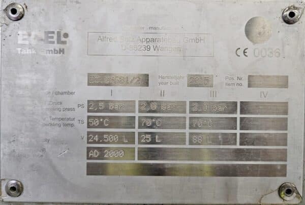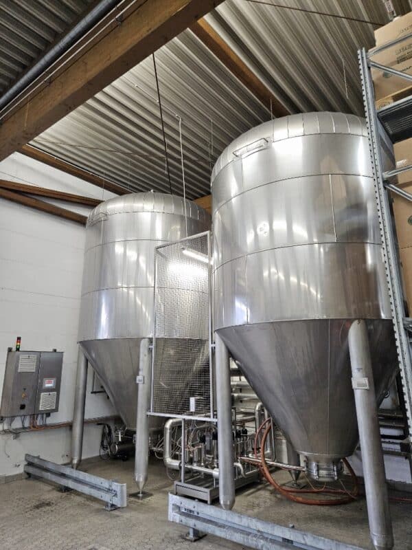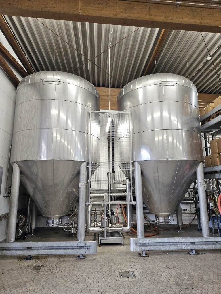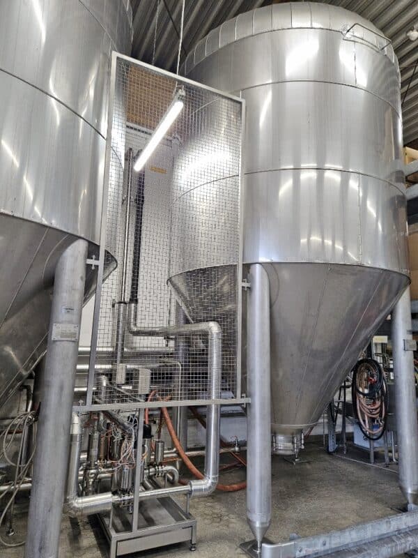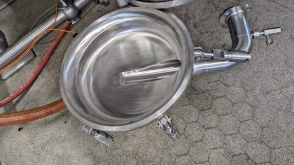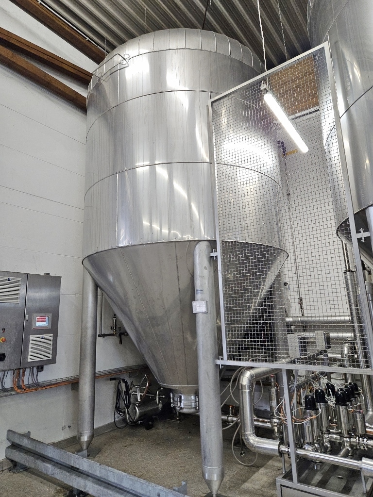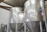 Brewery; Total height estimated according to drawing; 1 manhole diameter 450 mm with connection diameter 70 mm at the end of the cone bottom; wall thickness of 1000 mm of cylinder height 4 mm; we