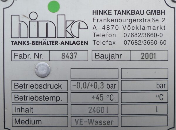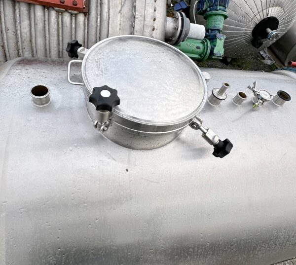 VE-water (demineralized water); frame, V2A; Manhole diameter: approx. 400mm; metallic discoloration in the interior of the container;