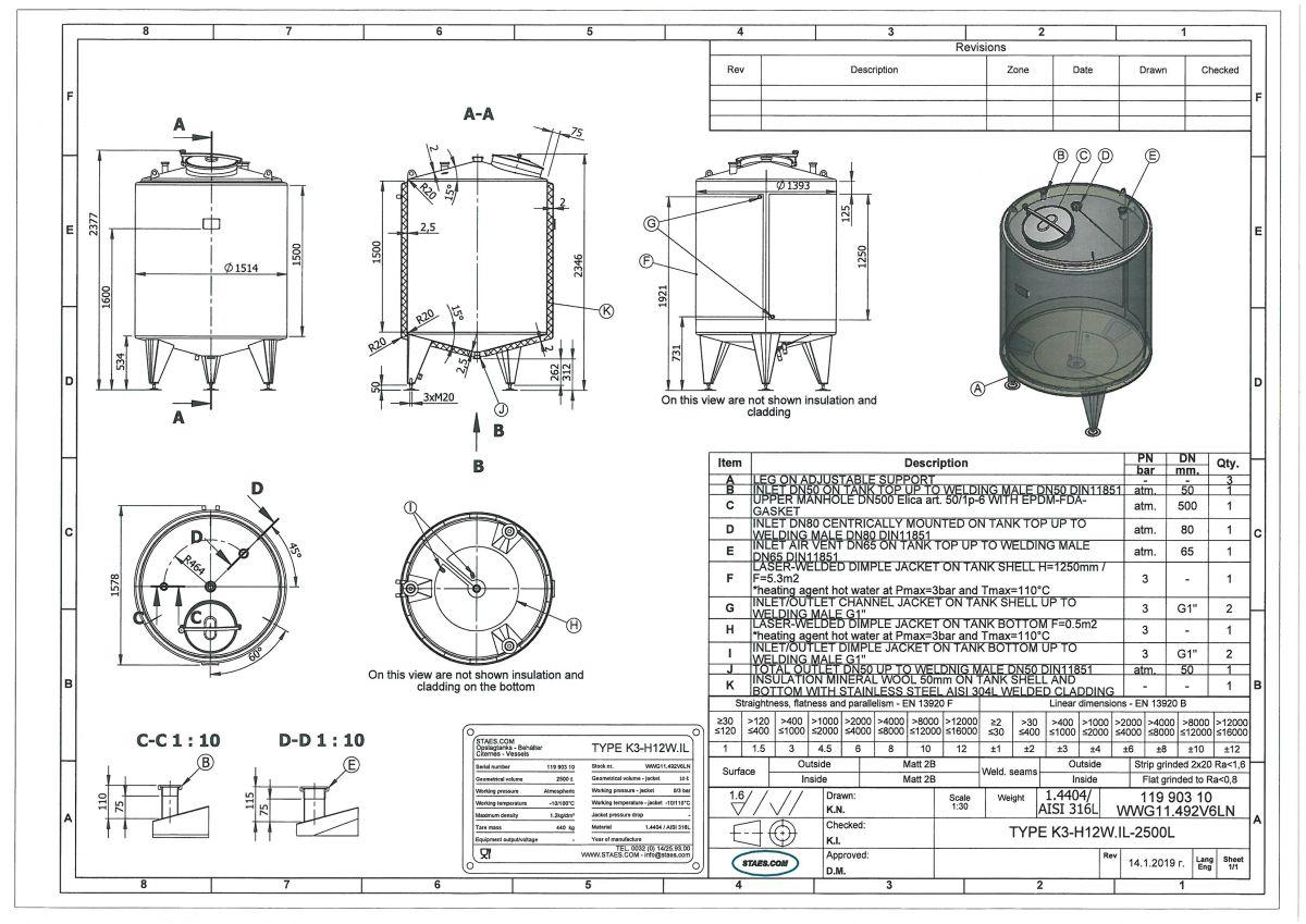 Ångtryck värmeväxlare: 0,50 Bar Ångtryck värmeväxlare botten: 0,50 Bar Anslutning värmeväxlare: 1" BSP Anslutning värmeväxlare botten: 1" BSP Arbetstemperatur värmeväxlare cylinder: 110 °C Arbetstemperatur värmeväxlare botten: 110 °C Kontaktyta cylinder: 5,30 m² Position värmeväxlare: the complet cilinder Typ av värmeväxlare på cylinder: dimple-jacket Typ av värmeväxlare på botten: dimple-jacket Vattentryck värmeväxlare: 3 Bar Vattentryck värmeväxlare botten: 3 Bar